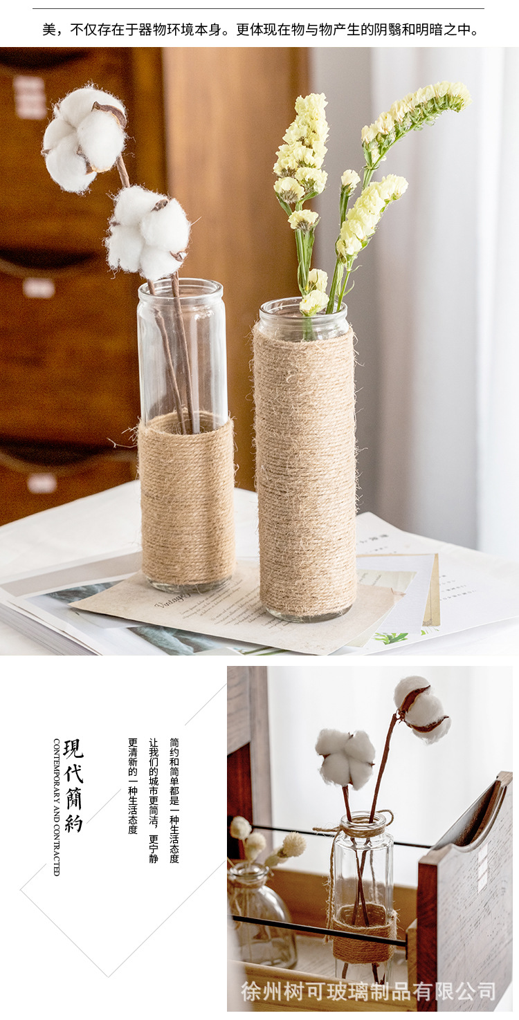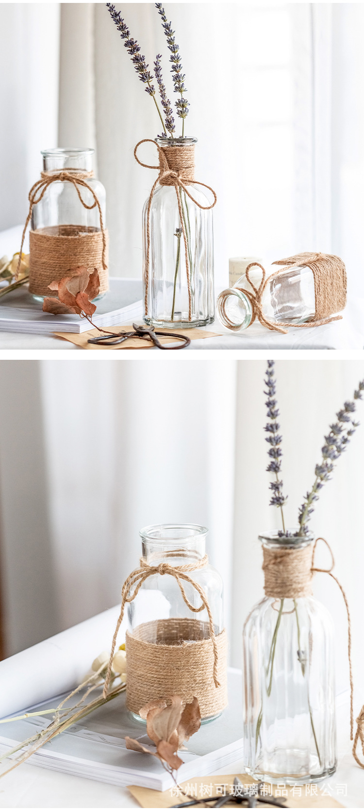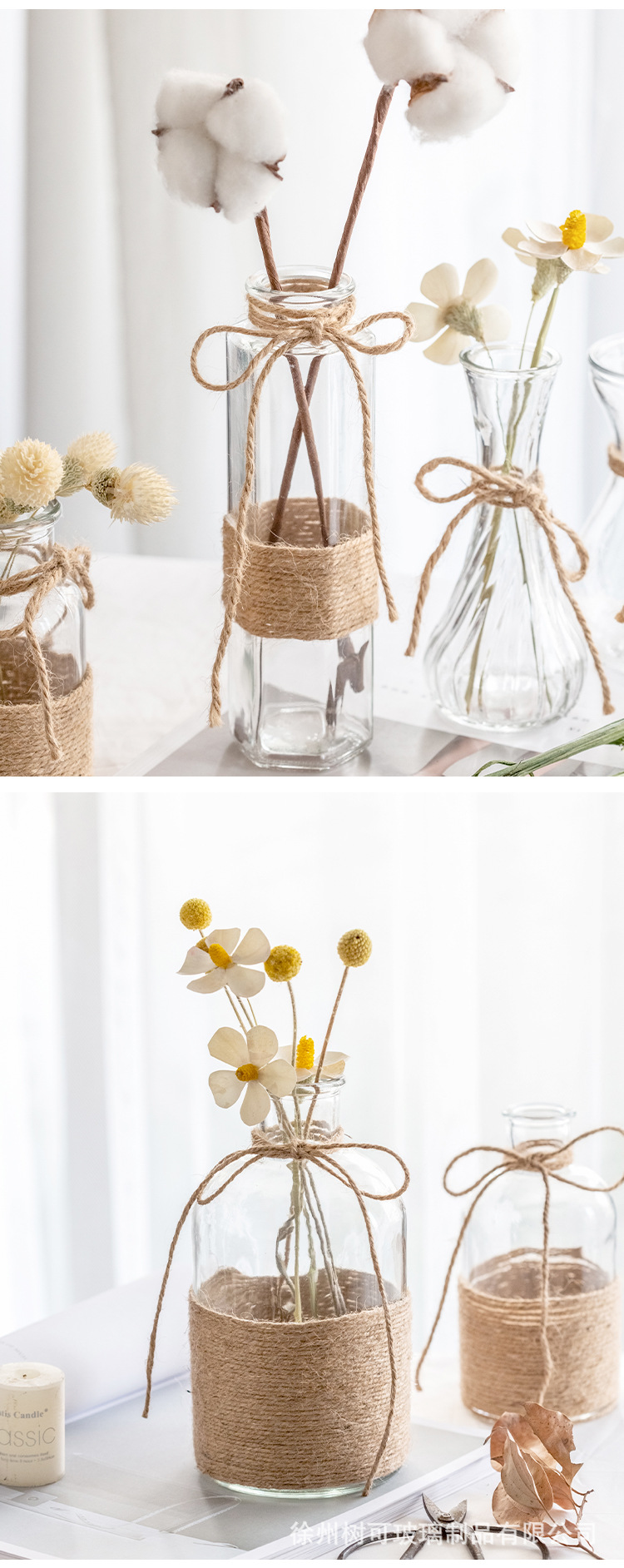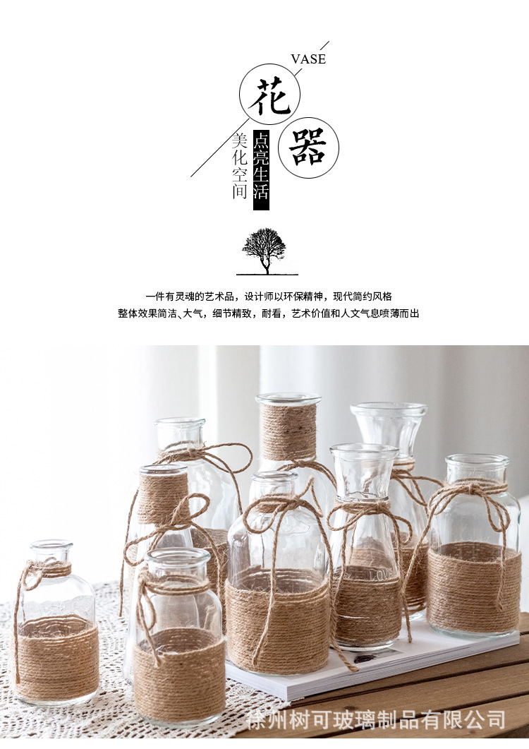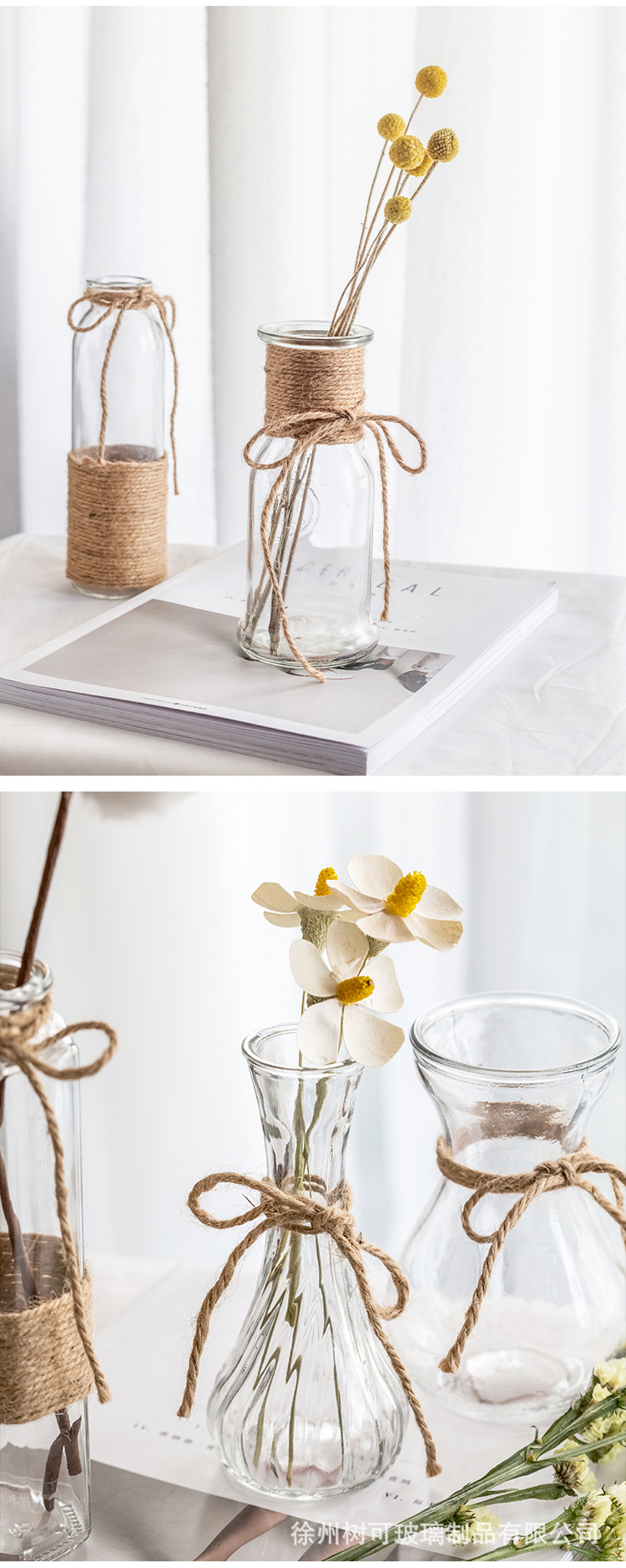 간단한 크리에이티브 유리 대마 로프 꽃병 투명 수경 꽃 녹색 식물 거실 꽃꽂이 가정 장식 장식품 도매