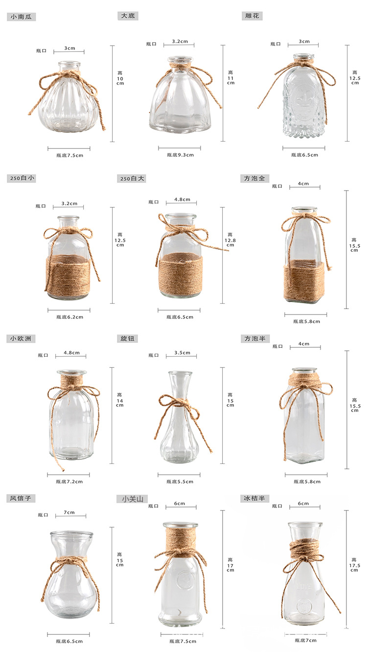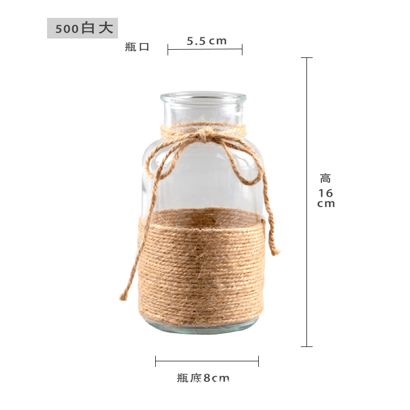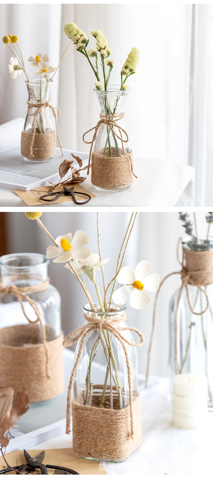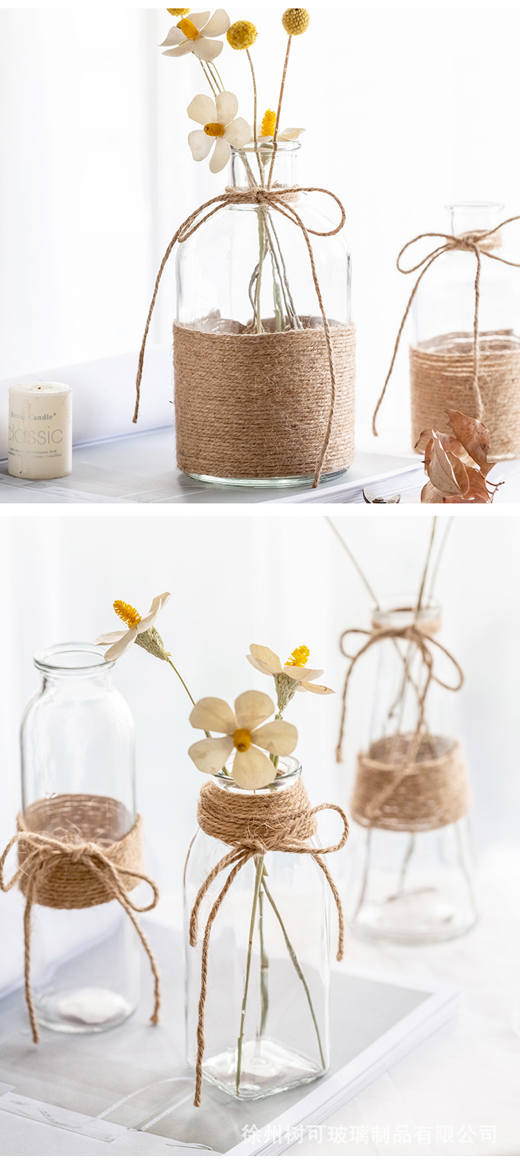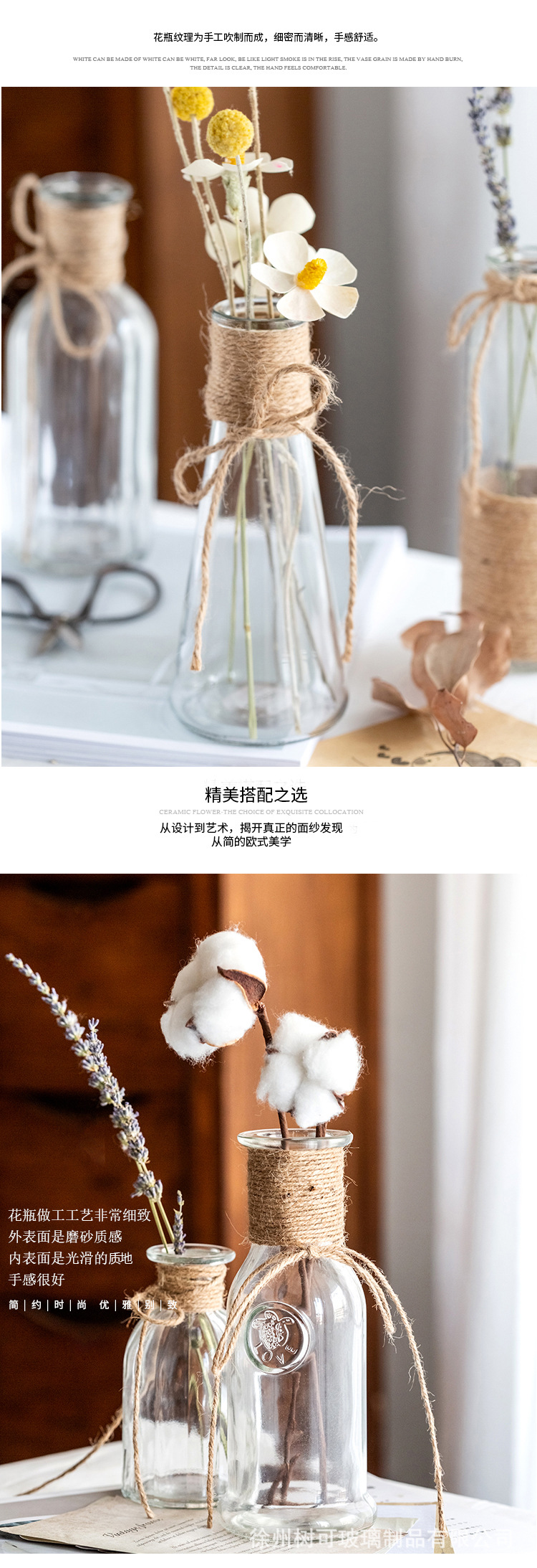간단한 크리에이티브 유리 대마 로프 꽃병 투명 수경 꽃 녹색 식물 거실 꽃꽂이 가정 장식 장식품 도매