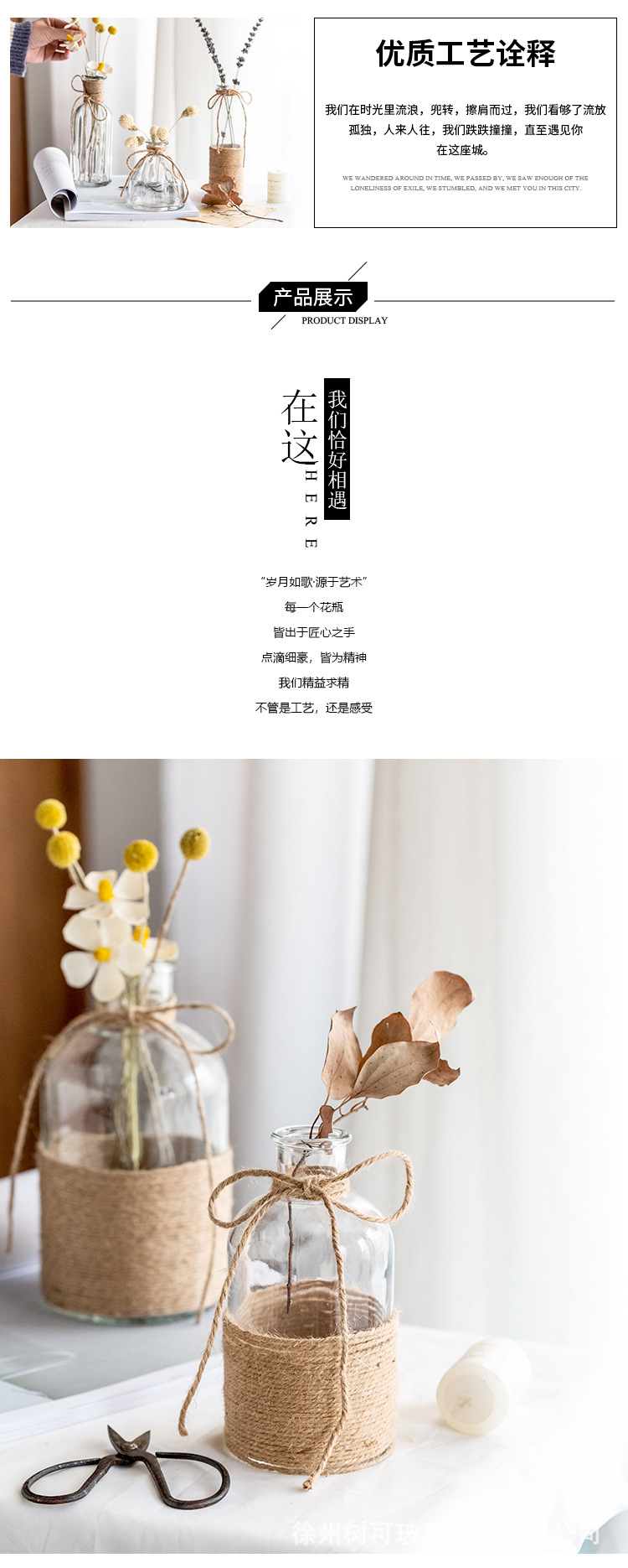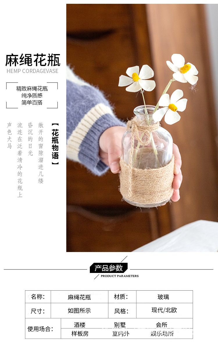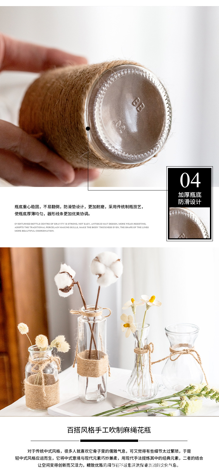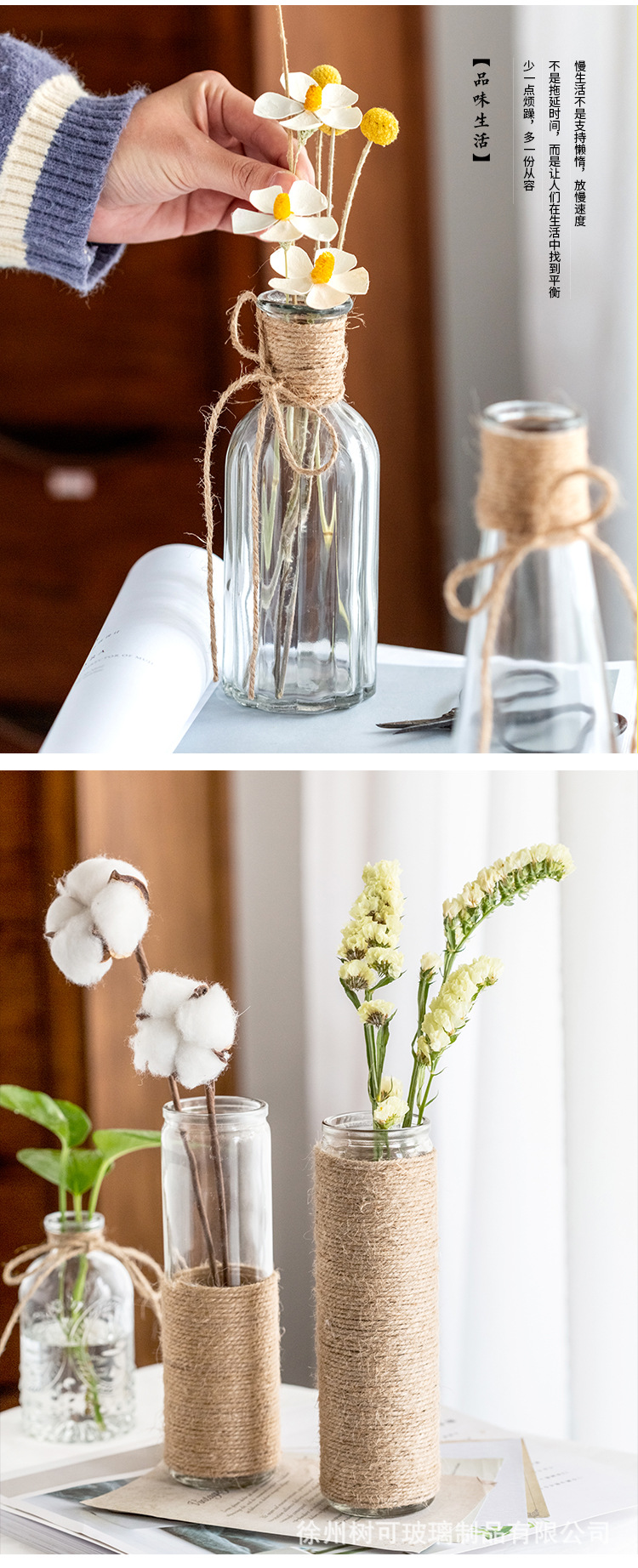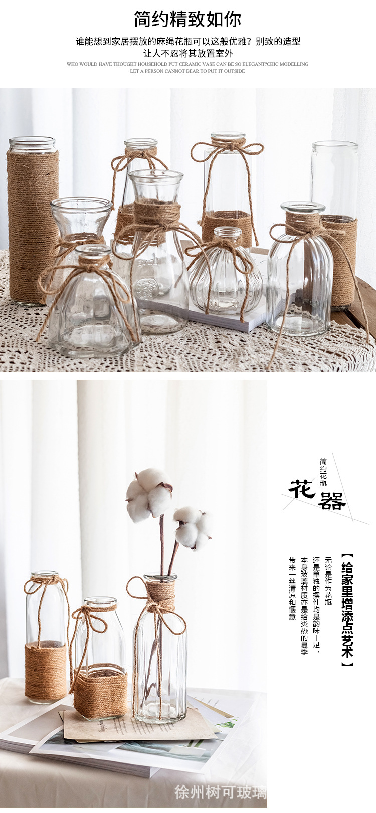 간단한 크리에이티브 유리 대마 로프 꽃병 투명 수경 꽃 녹색 식물 거실 꽃꽂이 가정 장식 장식품 도매스토어 가기