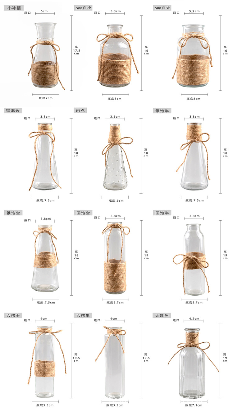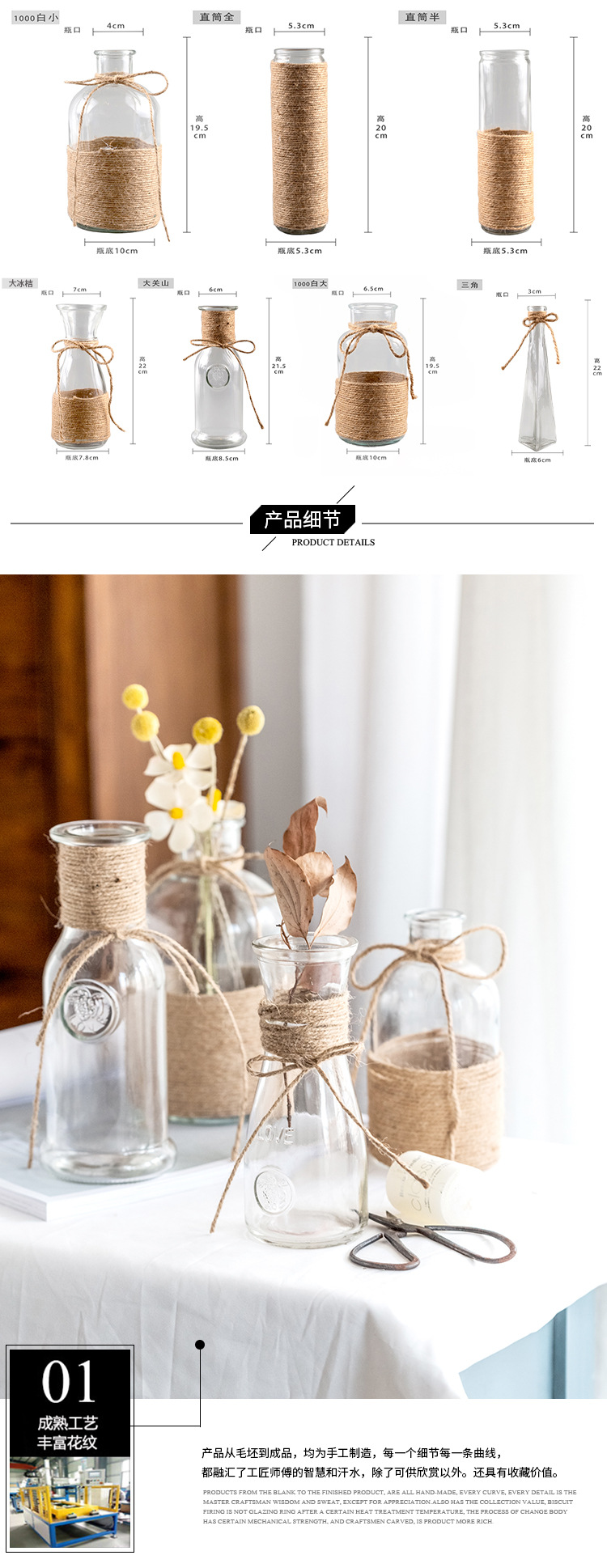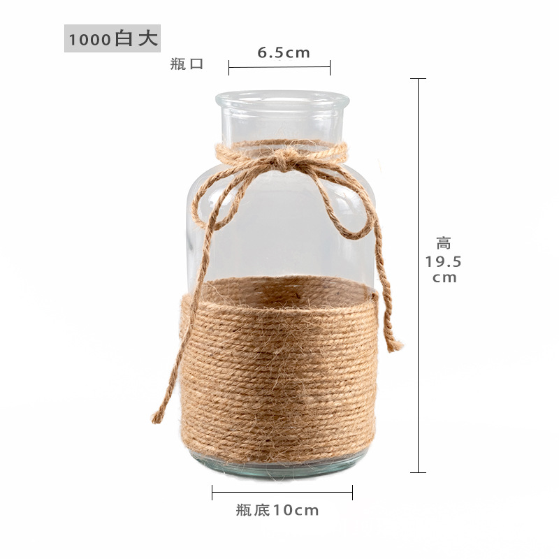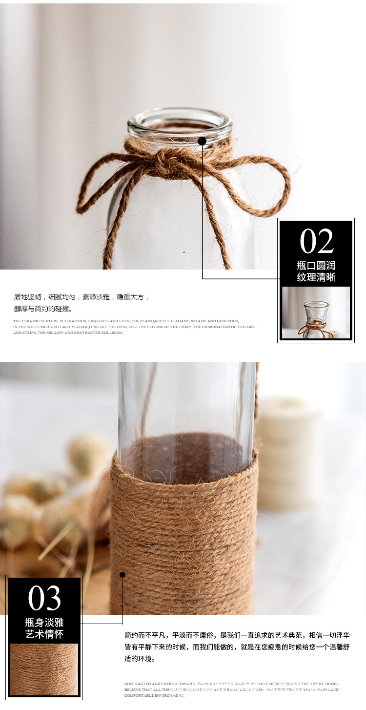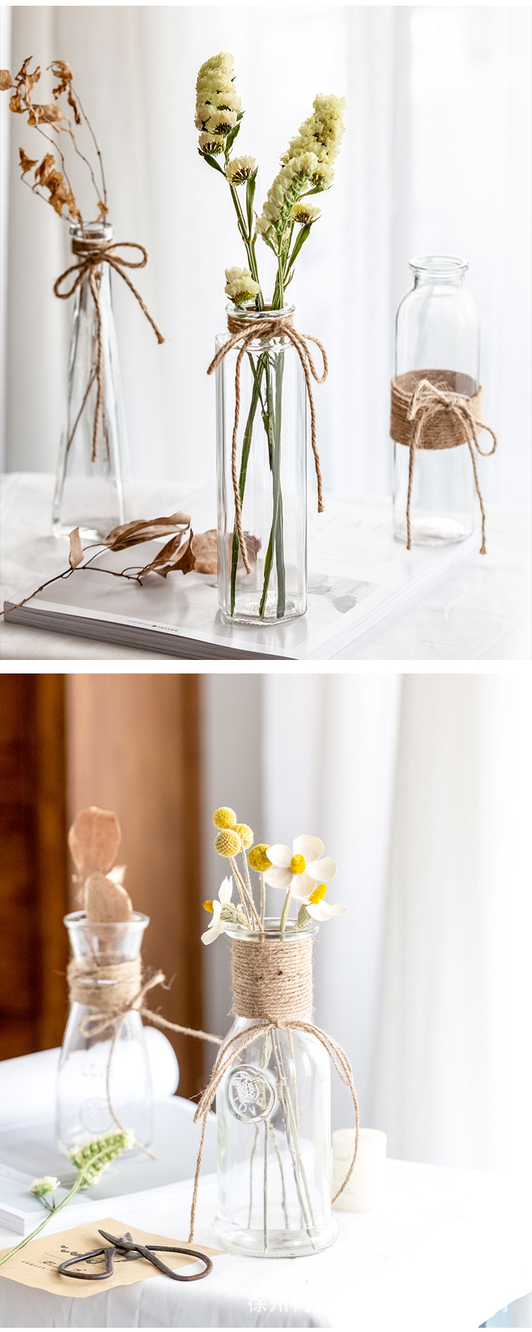 간단한 크리에이티브 유리 대마 로프 꽃병 투명 수경 꽃 녹색 식물 거실 꽃꽂이 가정 장식 장식품 도매스토어 가기