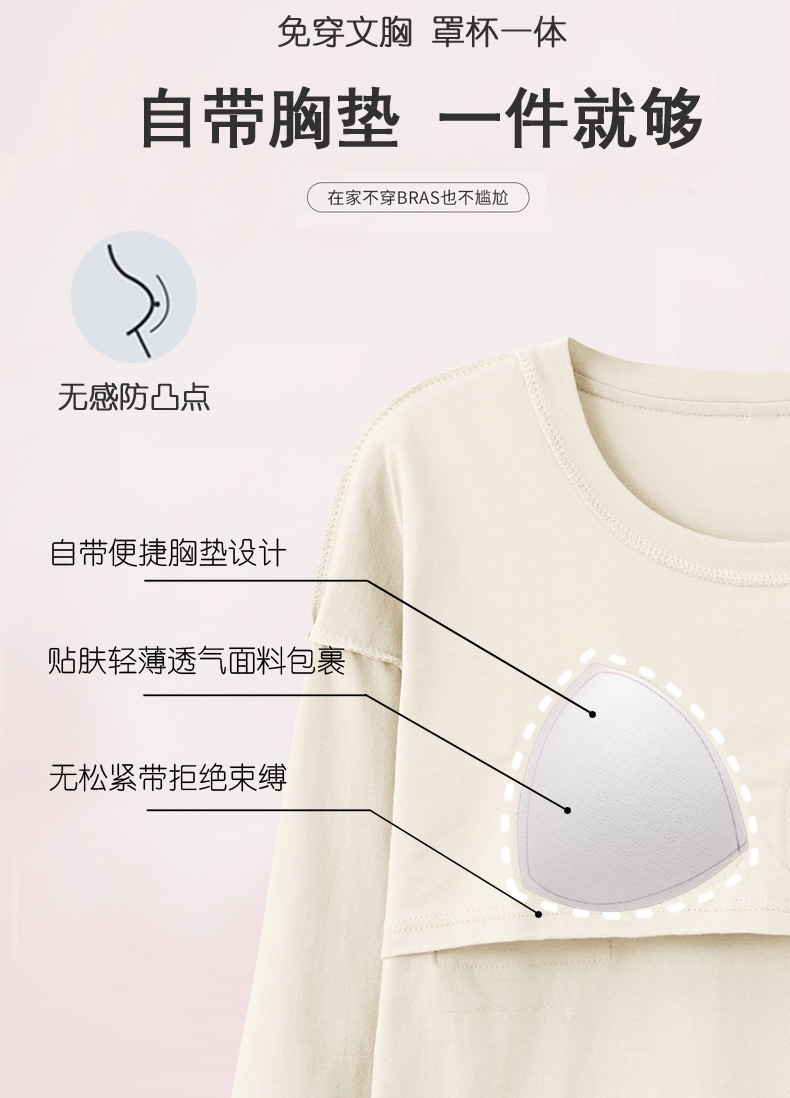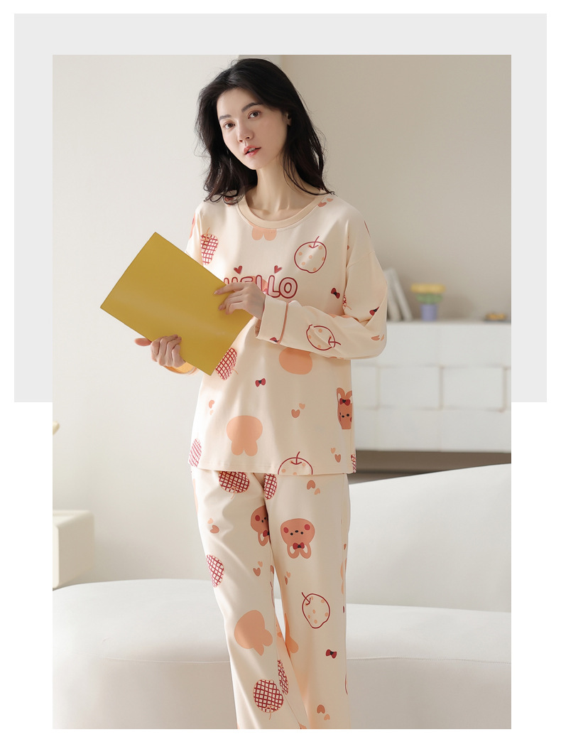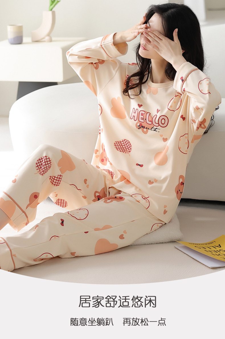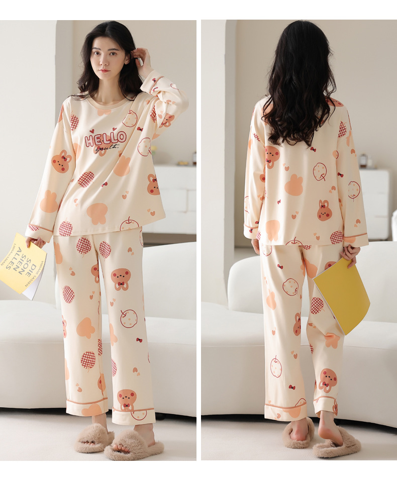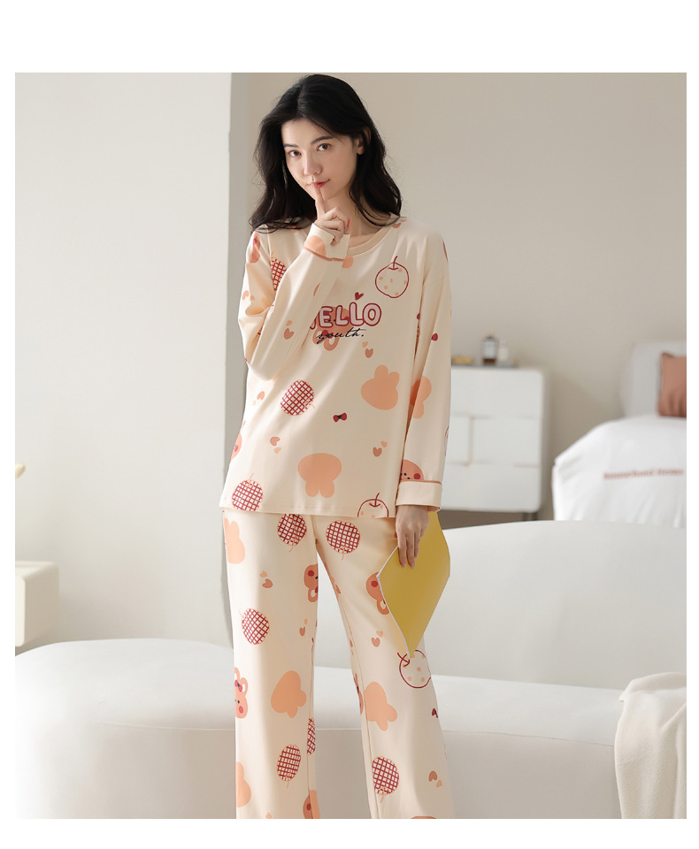 [가슴 패드로] 잠옷 여성 봄과 가을 면 긴 소매 바지 투피스 가을 여성 면 홈 옷 세트스토어 가기