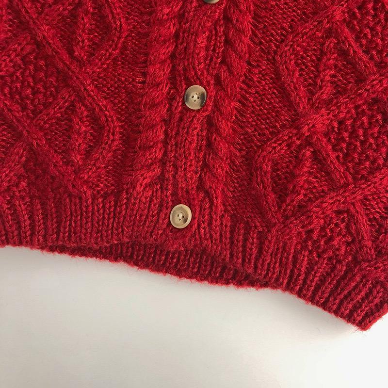 한국 어린이 빨간 스웨터 가디건 이른 봄 새로운 남성과 여성의 대마 패턴 니트 가디건 웨스턴 스타일 0110A010스토어 가기