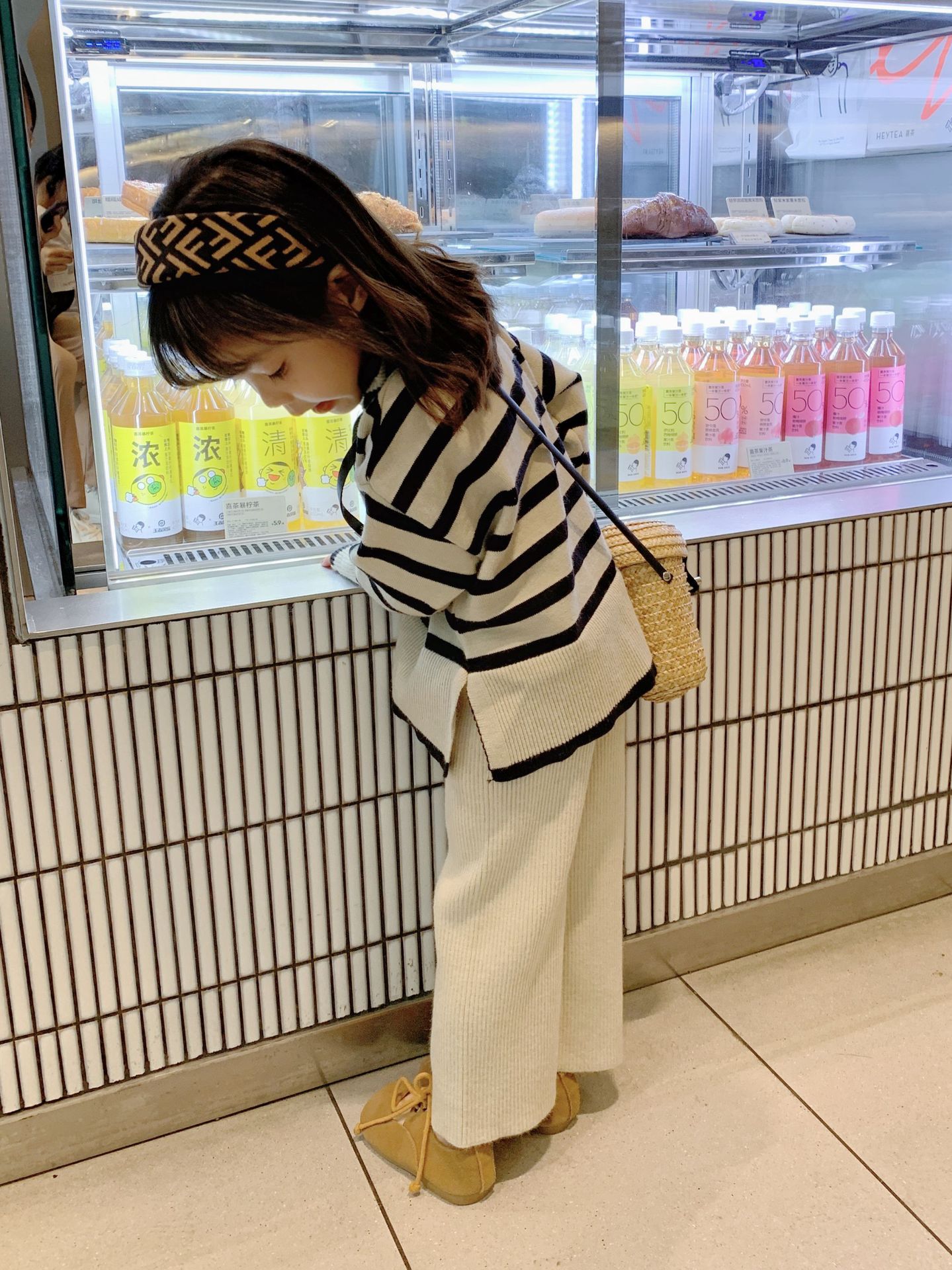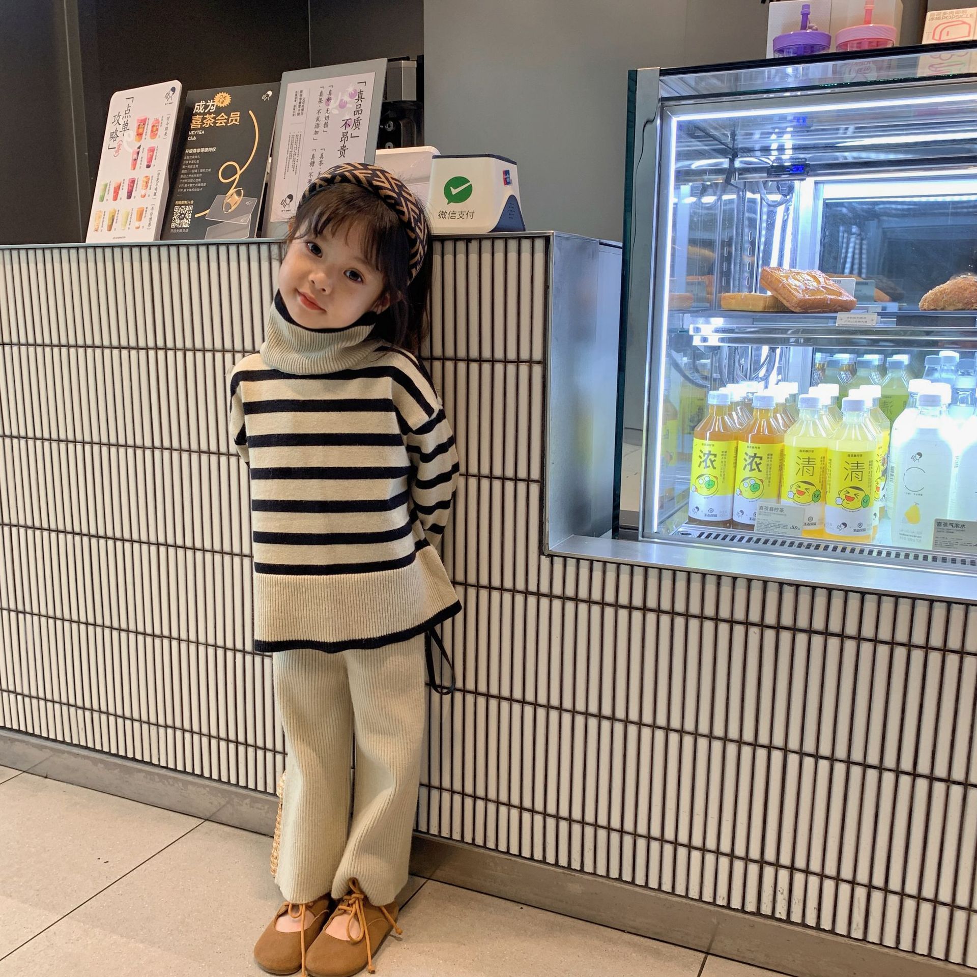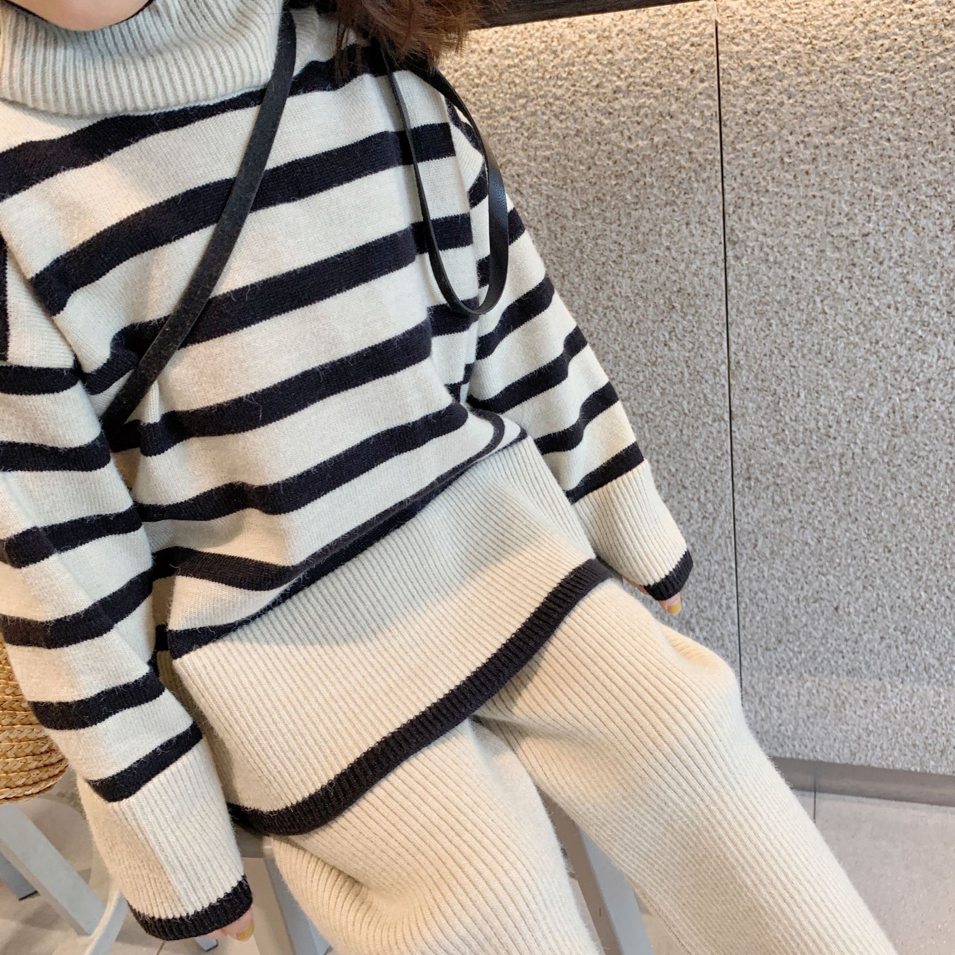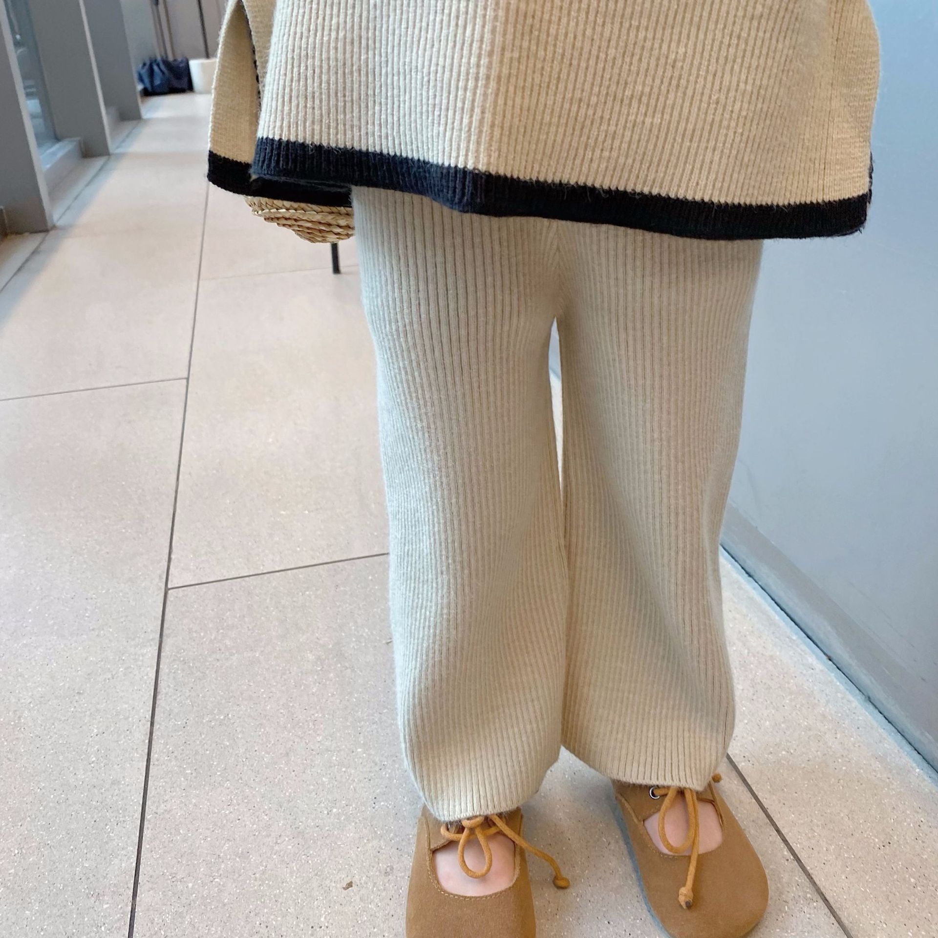 어린이 가을 새로운 한국식 스웨터 와이드 레그 로드 세트 소녀의 유행 서양 스타일 스트라이프 니트 투피스 세트스토어 가기