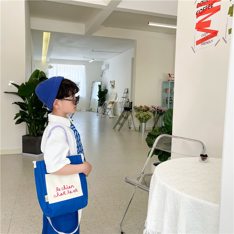 한국식 어린이 튜터 백 대용량 경량 휴대용 캔버스 백 유행 편지 경량 소년 소녀 크로스 바디 백