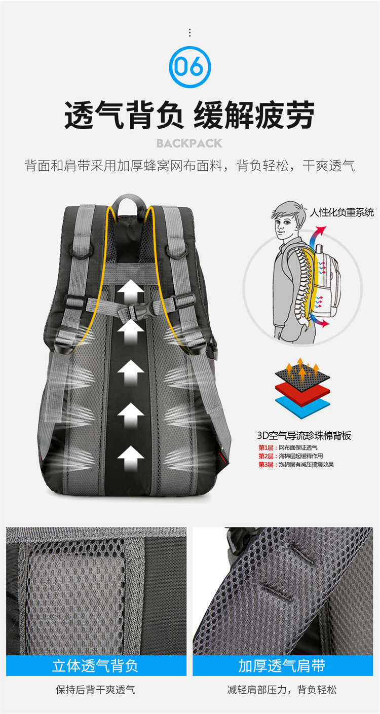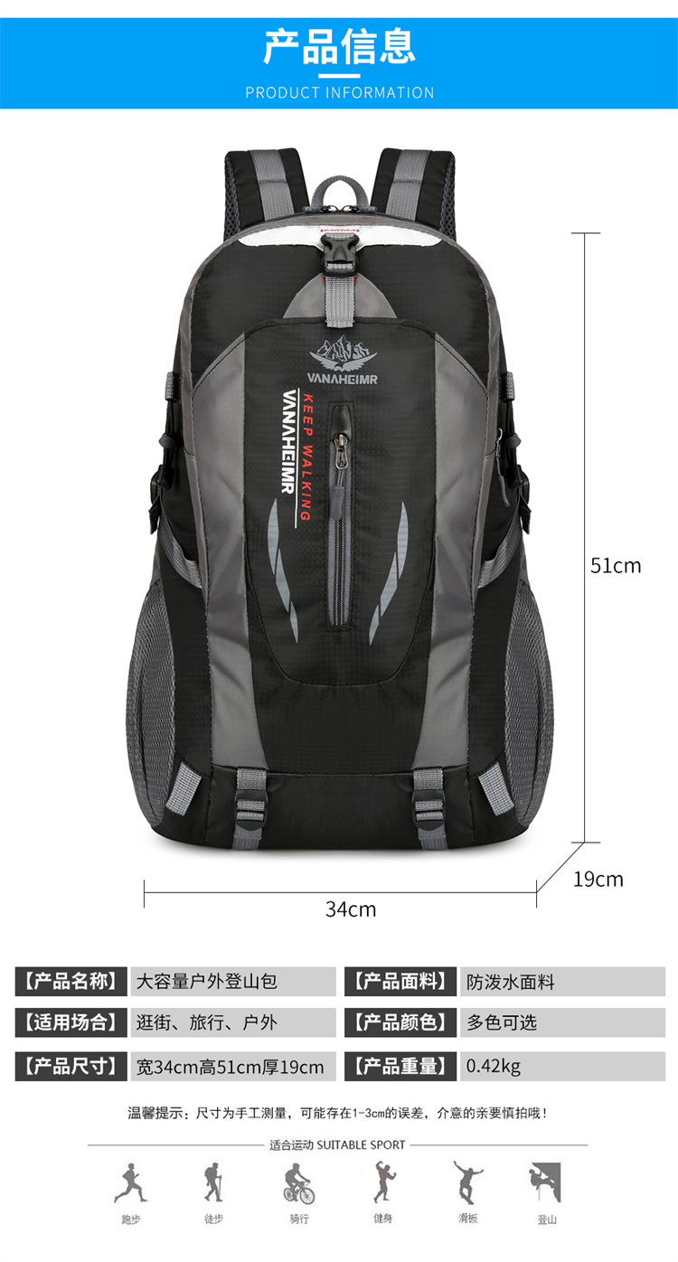 야외 등산 가방 통기성 발수 여행 캠핑 피크닉 배낭 남성 캐주얼 스포츠 배낭 대용량