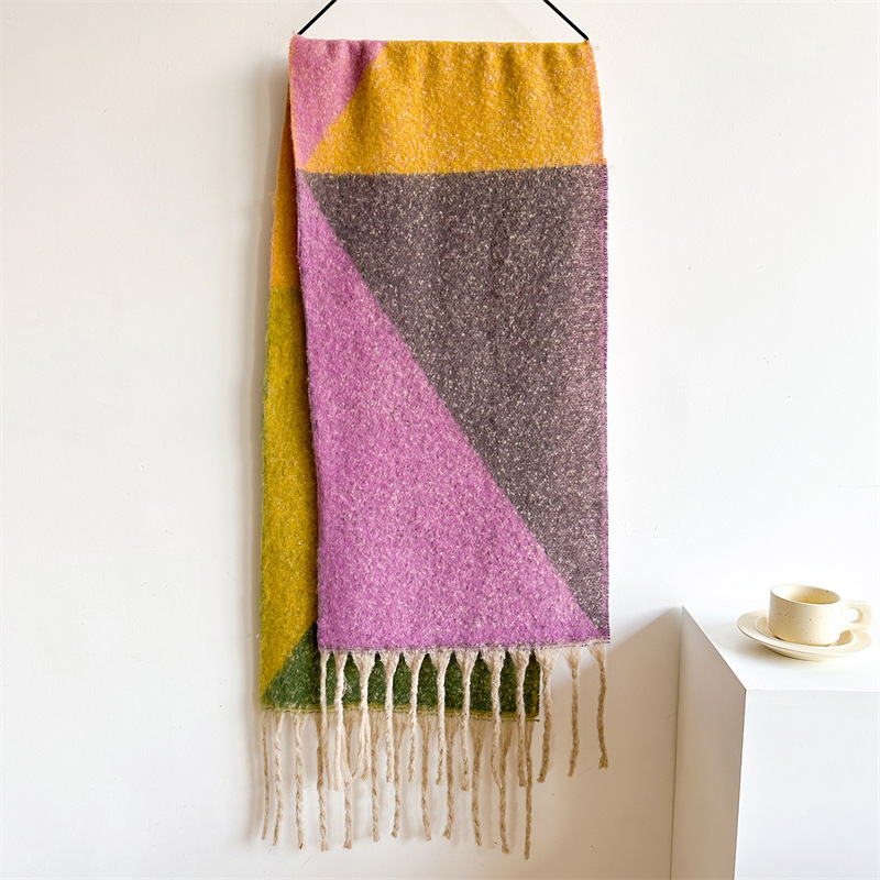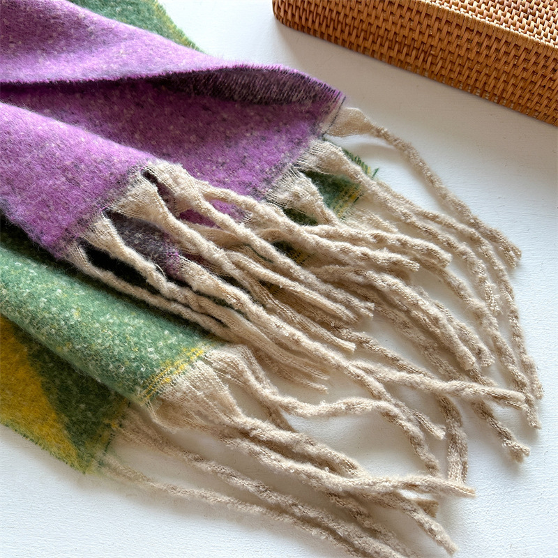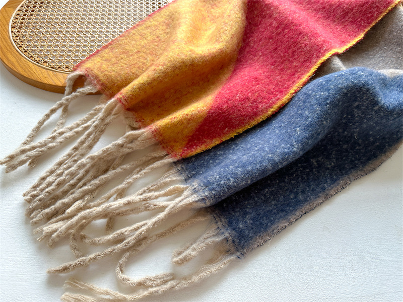 색상 불규칙한 유럽과 미국 핫 셀링 캐시미어 스카프 여성용 포장 된 부드러운 두꺼운 가을과 겨울 술 스카프스토어 가기