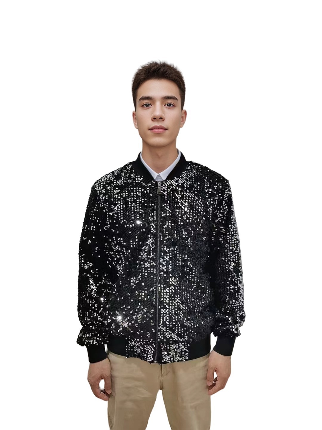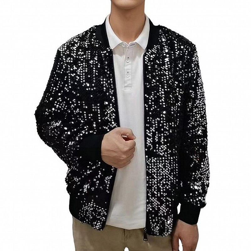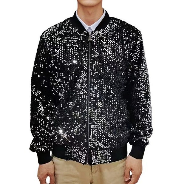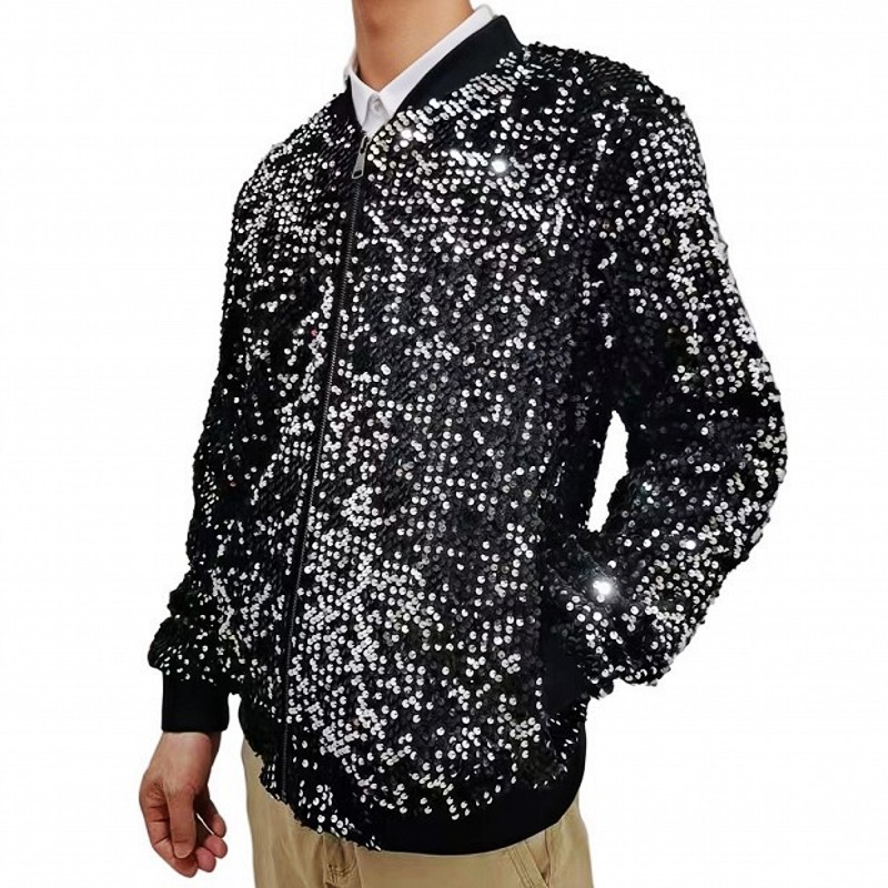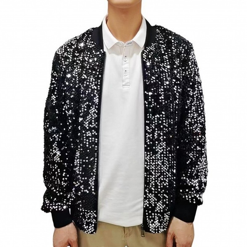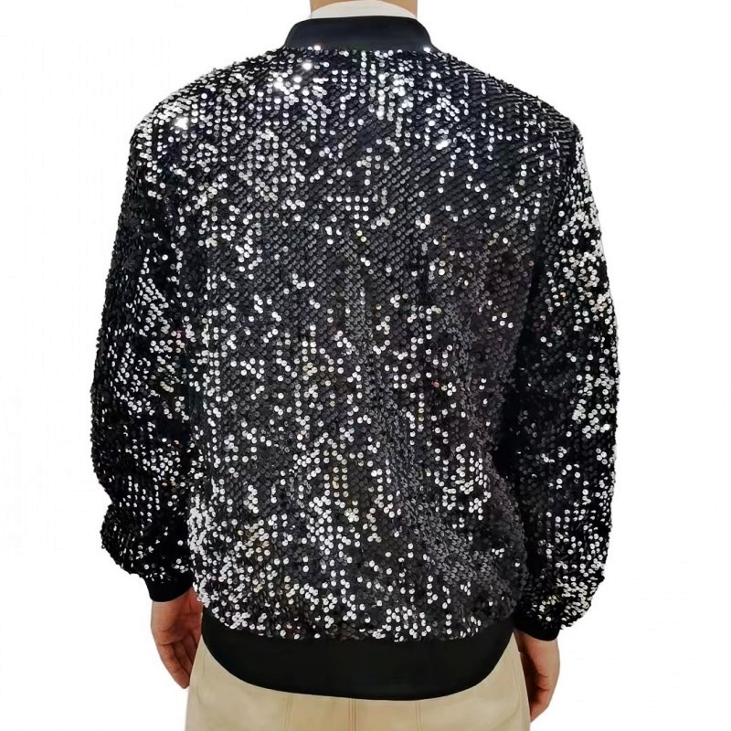 재고 도매 크로스 국경 공급 유럽과 미국 스타일 남자의 스팽글 재킷 무대 빛나는 성능 야구 세트 코트스토어 가기