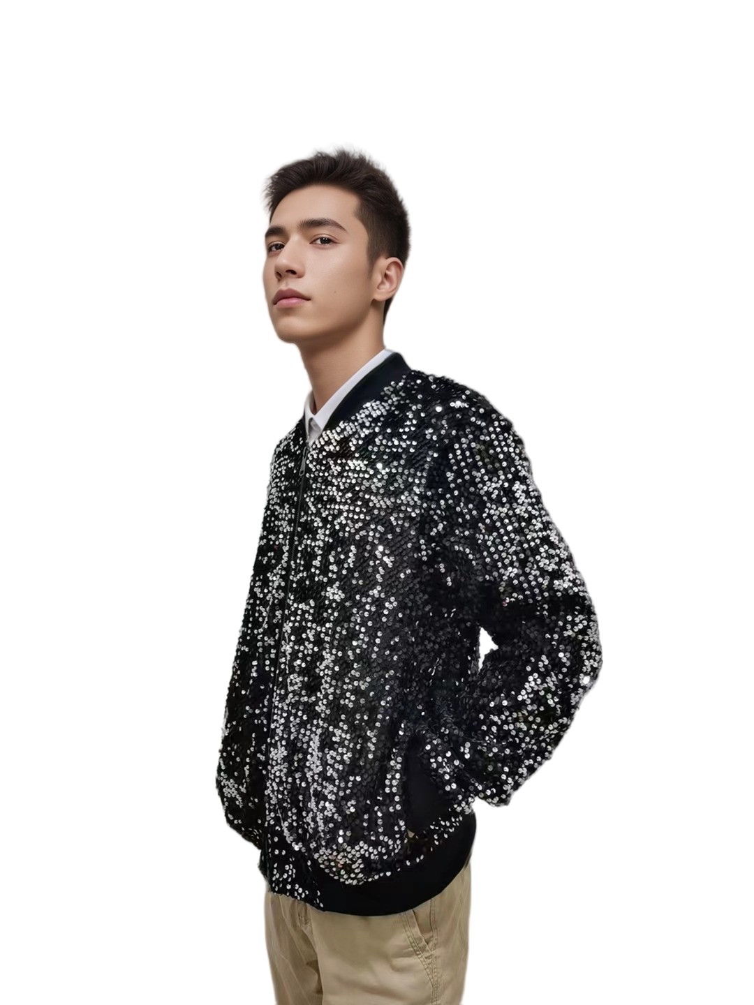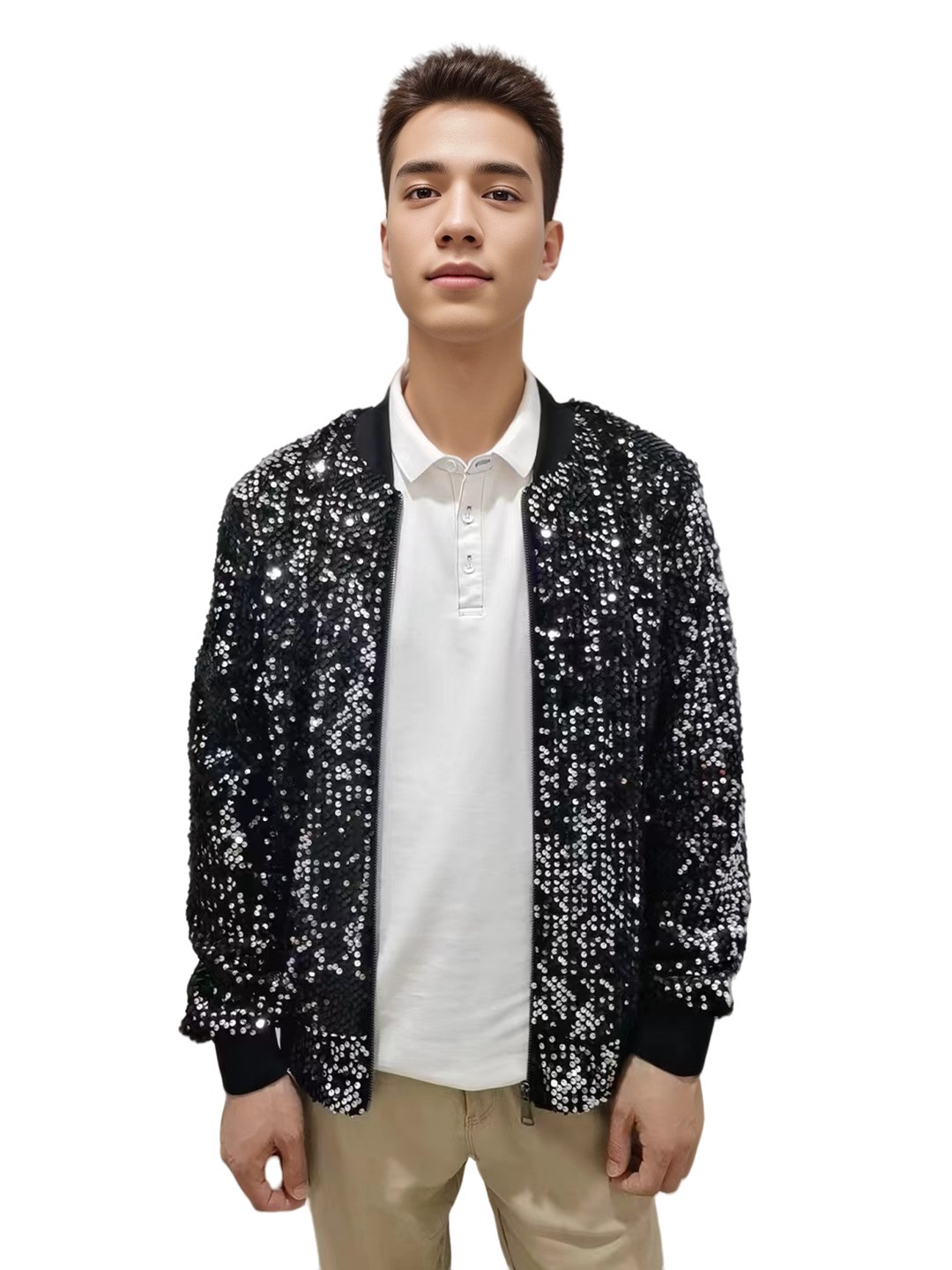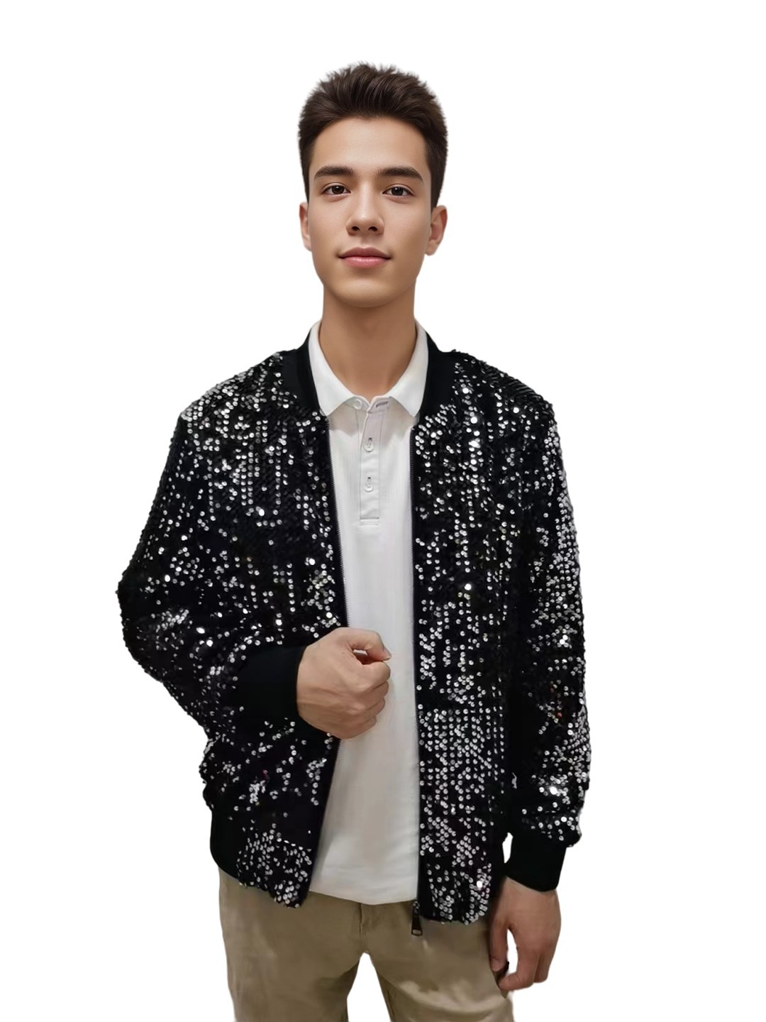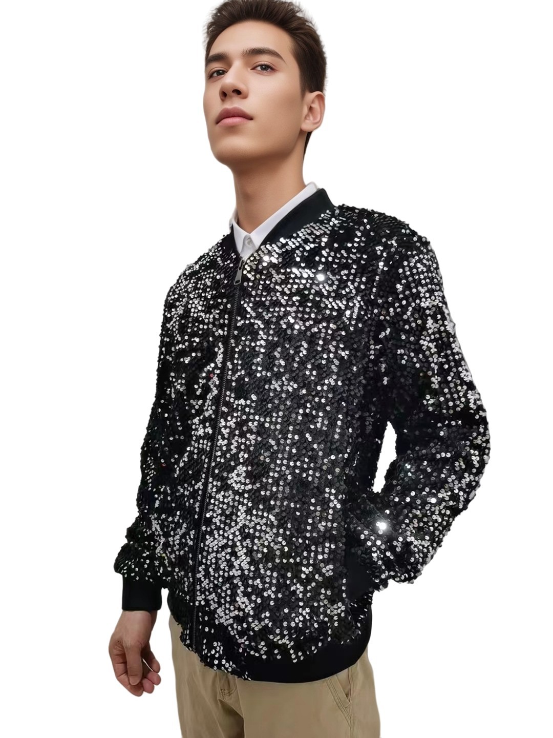 재고 도매 크로스 국경 공급 유럽과 미국 스타일 남자의 스팽글 재킷 무대 빛나는 성능 야구 세트 코트스토어 가기