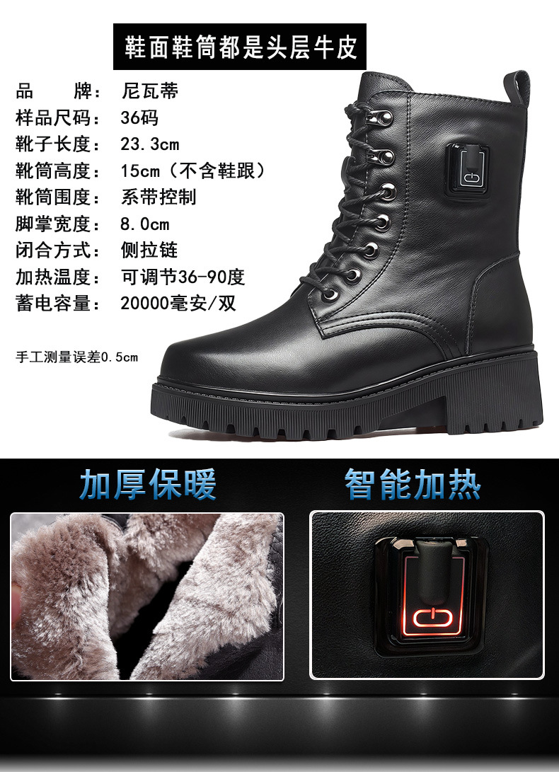새로운 여성 가죽 부츠 충전 가열 따뜻한 신발 정품 가죽 기모 면화 신발 가열 걷기 전기 따뜻한 신발 마틴 부츠