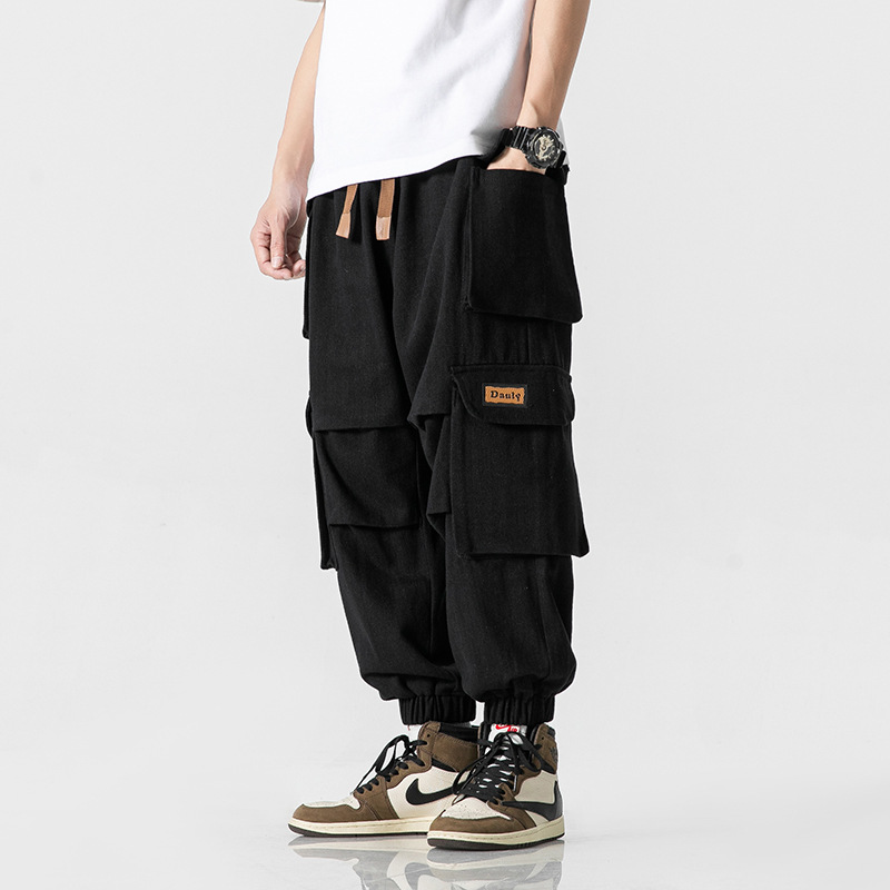면 남자의 유행 브랜드 다리 느슨한 세탁 바지스토어 가기