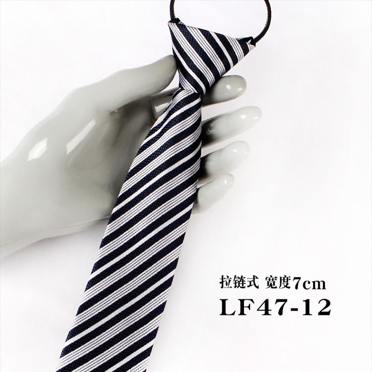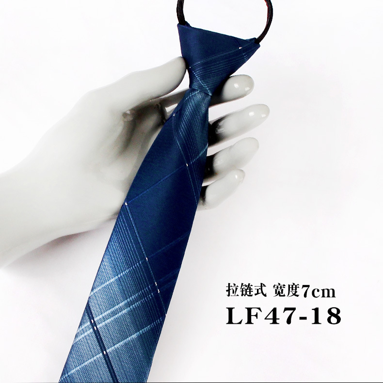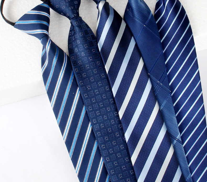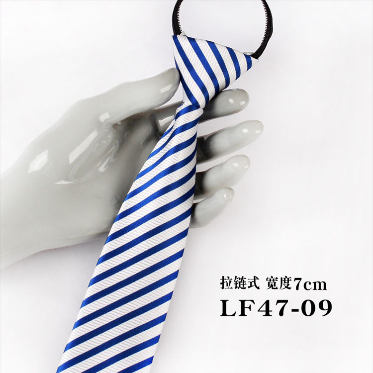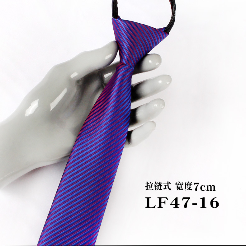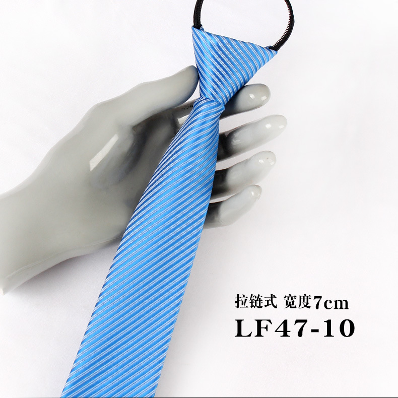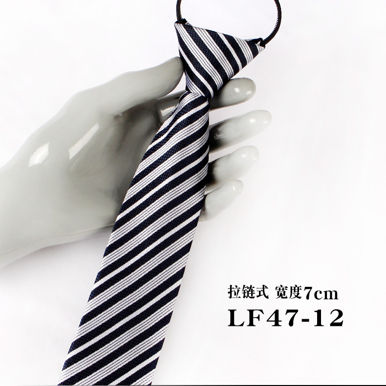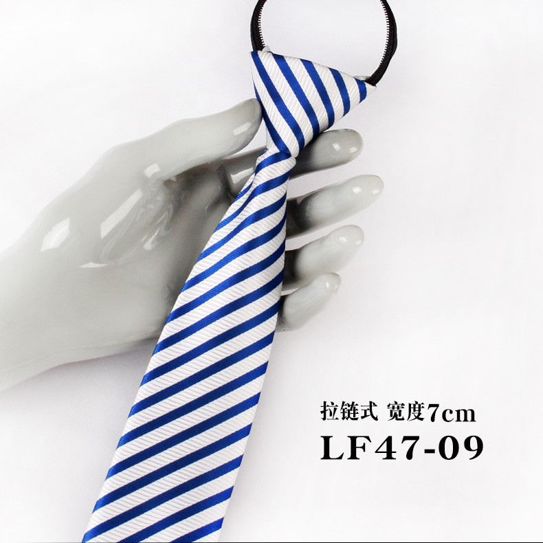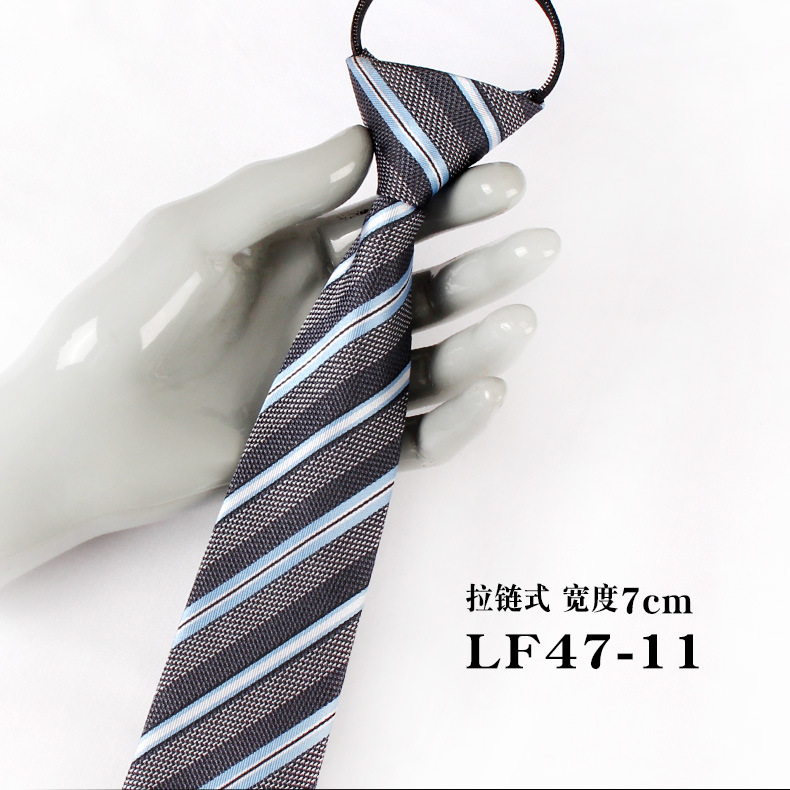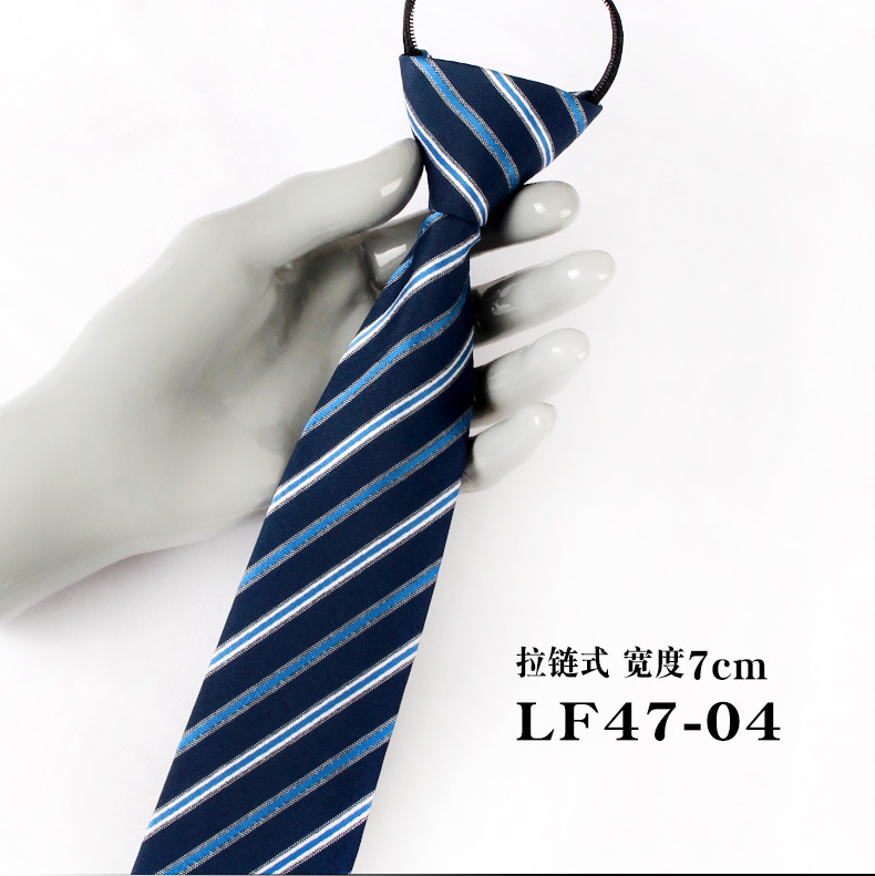 원피스 비즈니스 전문 매듭 무료 게으른 지퍼 넥타이 7cm 블루 줄무늬를 당겨 쉽게 공구 넥타이 도매
