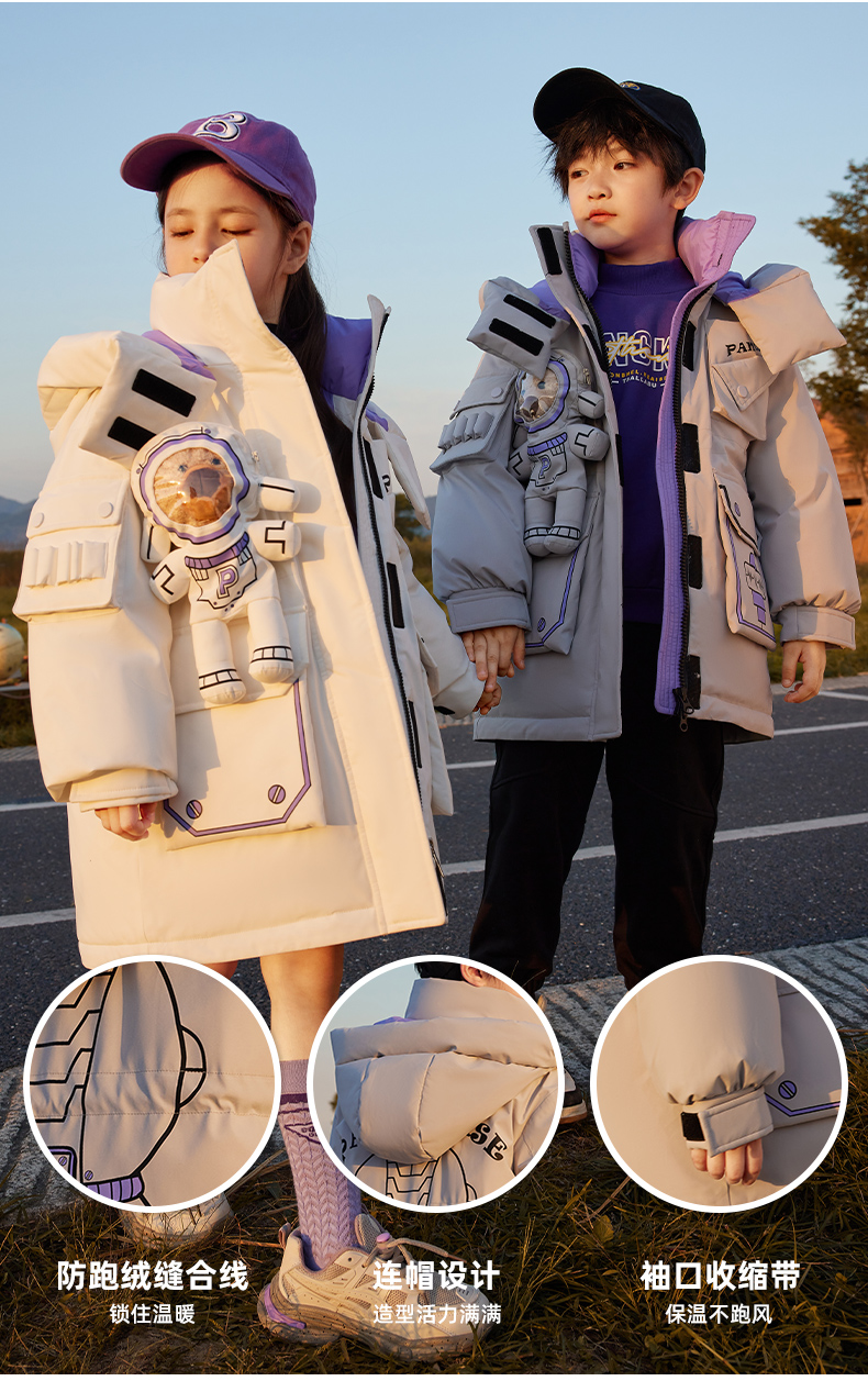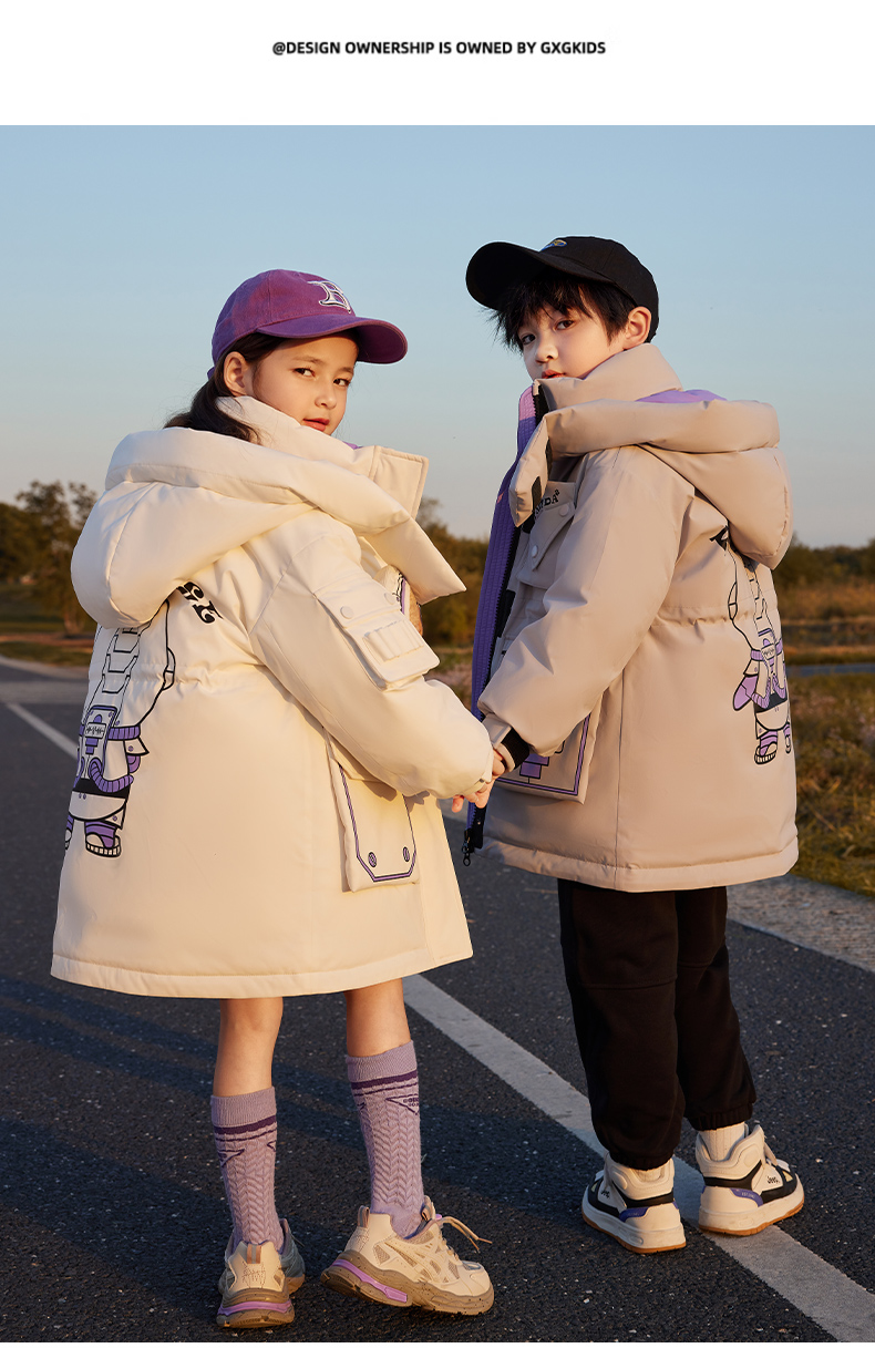 덕 다운 재킷 소년과 소녀 2023 가을과 겨울 새로운 긴 모자 두꺼운 따뜻한 재킷 J스토어 가기