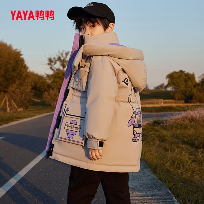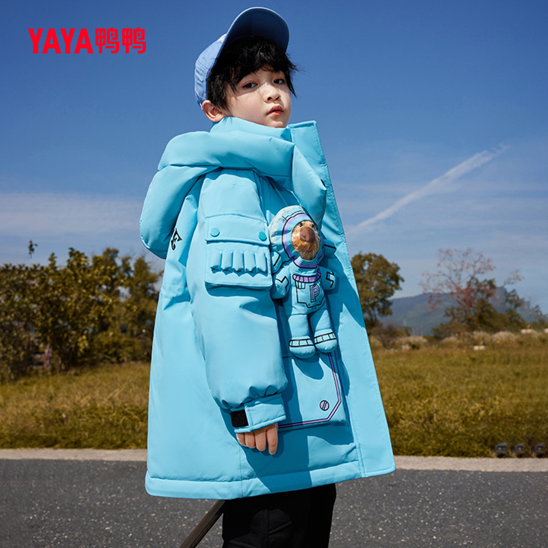 덕 다운 재킷 소년과 소녀 2023 가을과 겨울 새로운 긴 모자 두꺼운 따뜻한 재킷 J