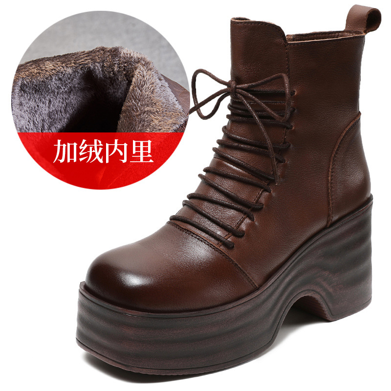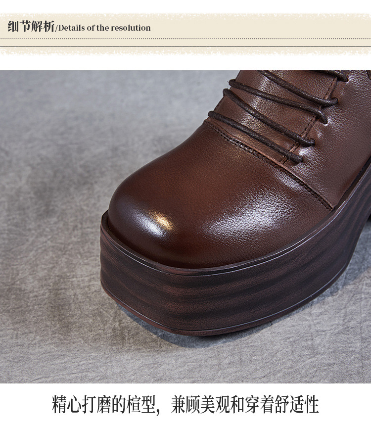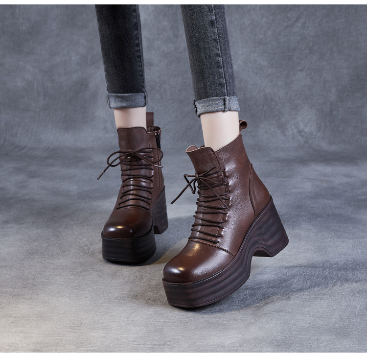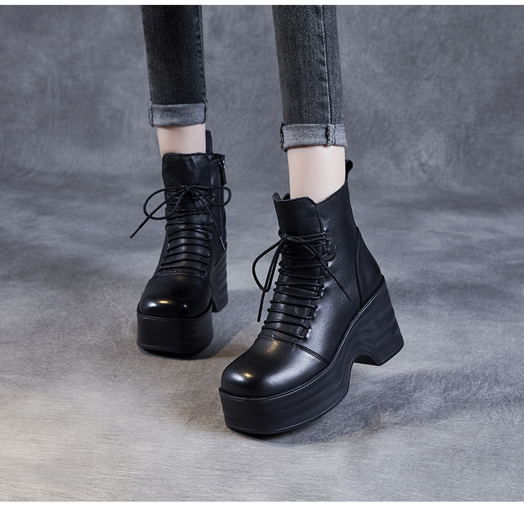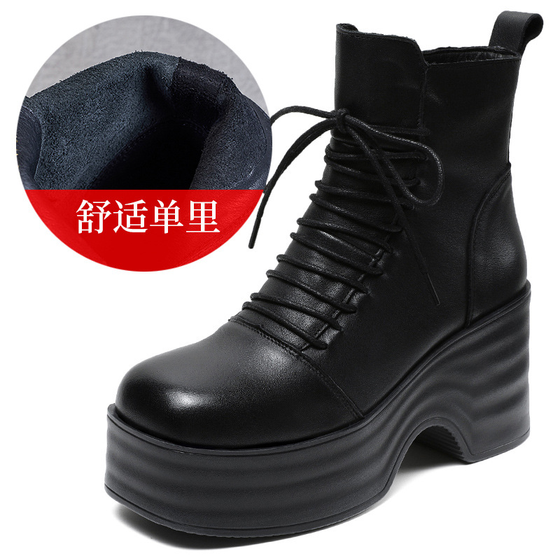 2023 가을과 겨울 슈퍼 하이힐 정품 가죽 스퀘어 두꺼운 바닥 플랫폼 부츠 여성용 마틴 부츠 여성용 영국 스타일 두꺼운 굽 여성용 부츠