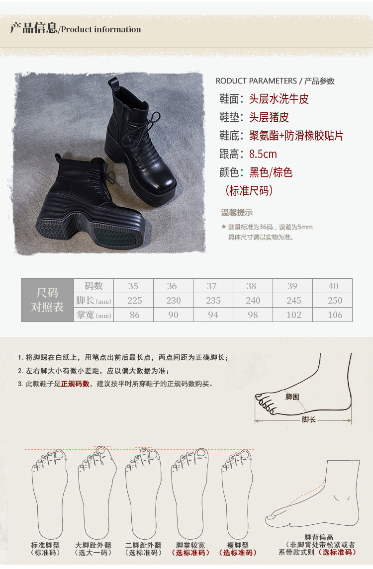 2023 가을과 겨울 슈퍼 하이힐 정품 가죽 스퀘어 두꺼운 바닥 플랫폼 부츠 여성용 마틴 부츠 여성용 영국 스타일 두꺼운 굽 여성용 부츠스토어 가기