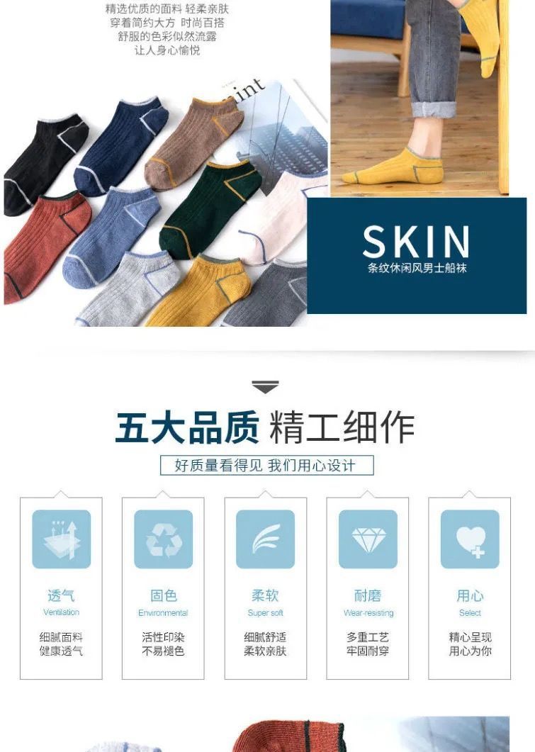 양말 남성용 짧은 양말 한국 스타일 10가지 색상 6