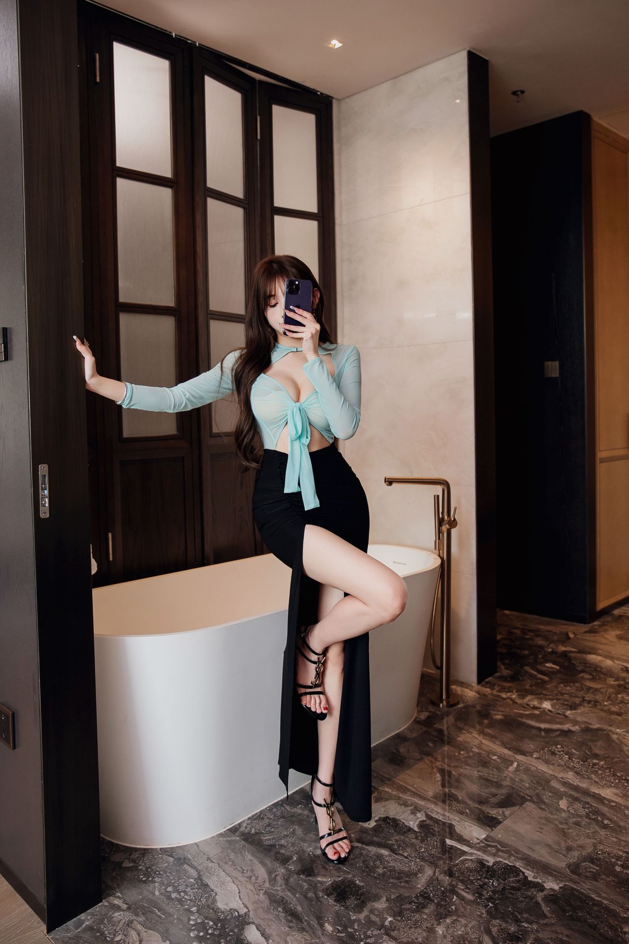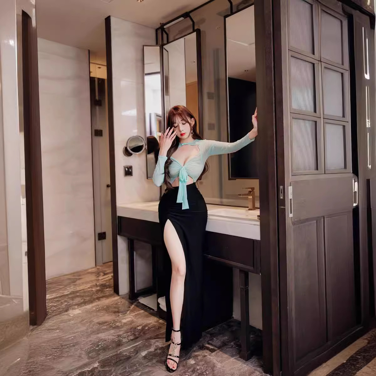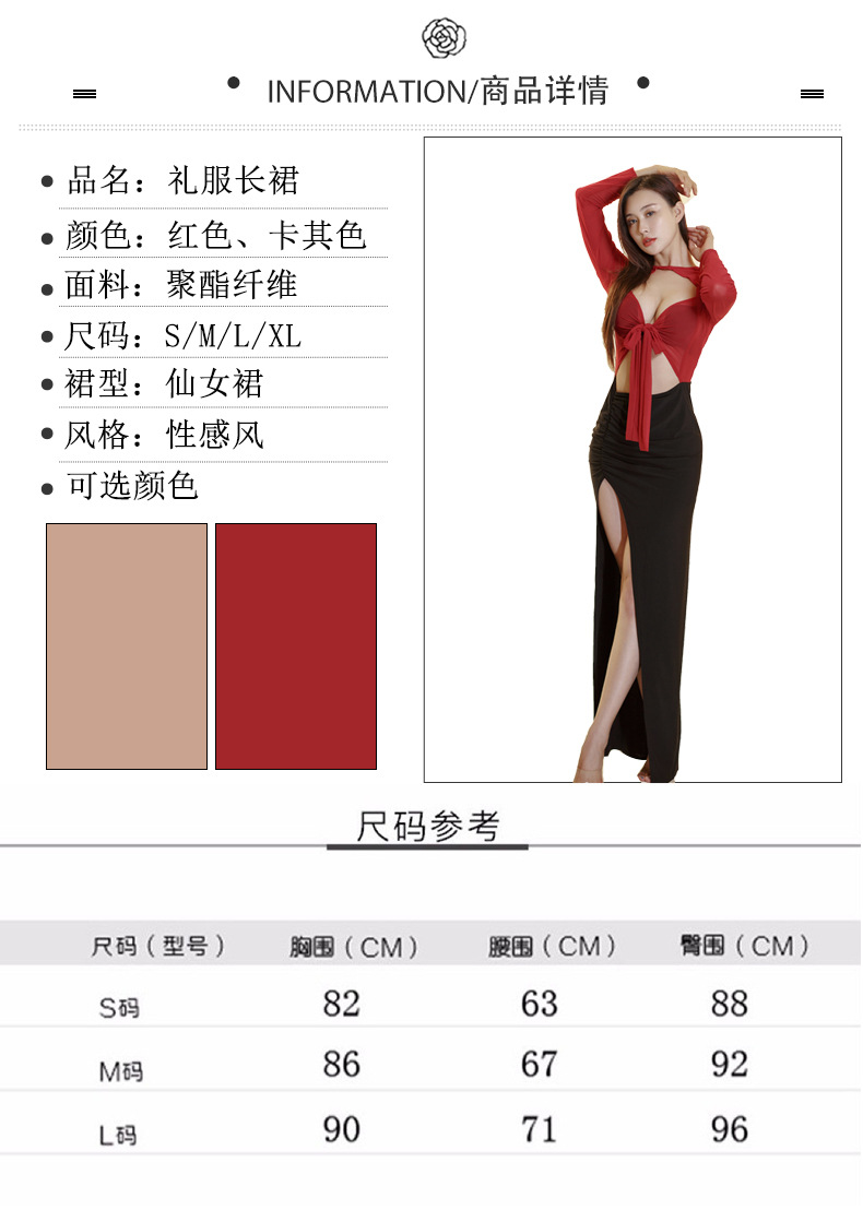 패션 나이트 클럽 원피스 긴 원피스 섹시한 관점 빈 하이 스플릿 원피스 목욕 사우나 기술자 컬러 대비 유혹스토어 가기