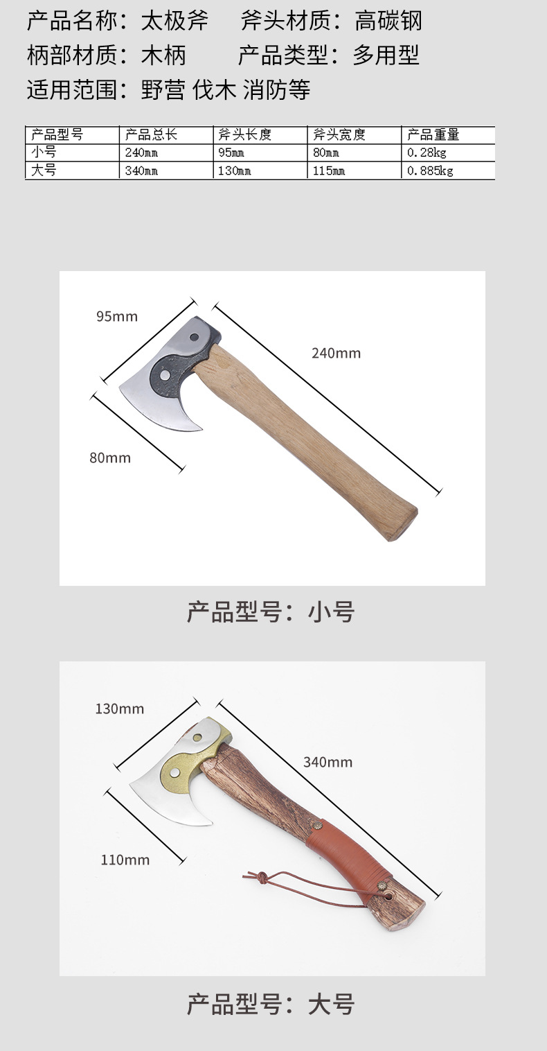 나무 손잡이 고탄소강 태극권 도끼 휴대용 야외 캠핑 도끼 다기능 장작 절단 도끼 도매