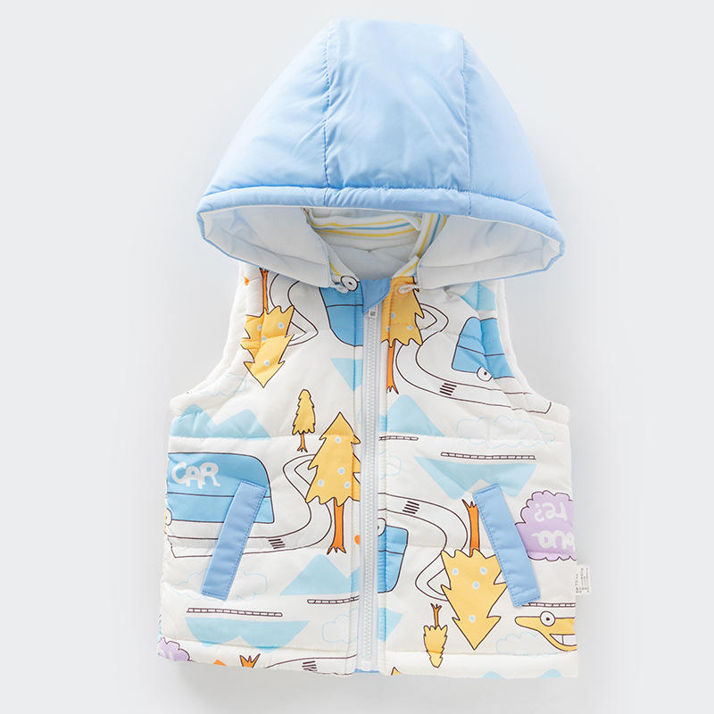 아기 조끼 가을과 겨울 옷 어린이 기모 따뜻한 조끼 소년과 소녀를위한 두꺼운 만화 외부 포기 아기스토어 가기