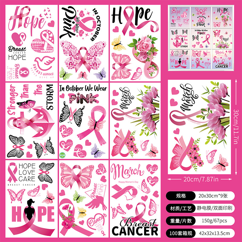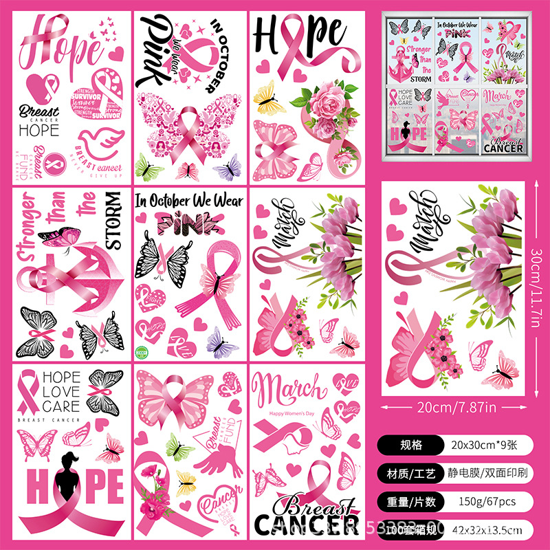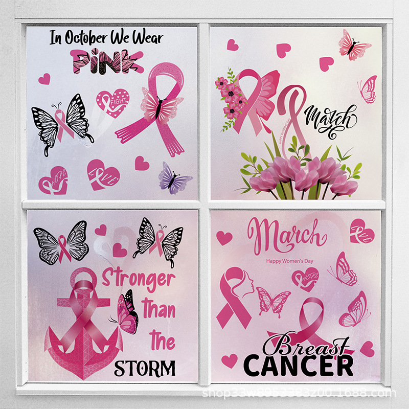 크로스 국경 새로운 사랑 우유 일 정전기 스티커 유방 보호 핑크 사랑 리본 나비 꽃 창 장식 스티커스토어 가기