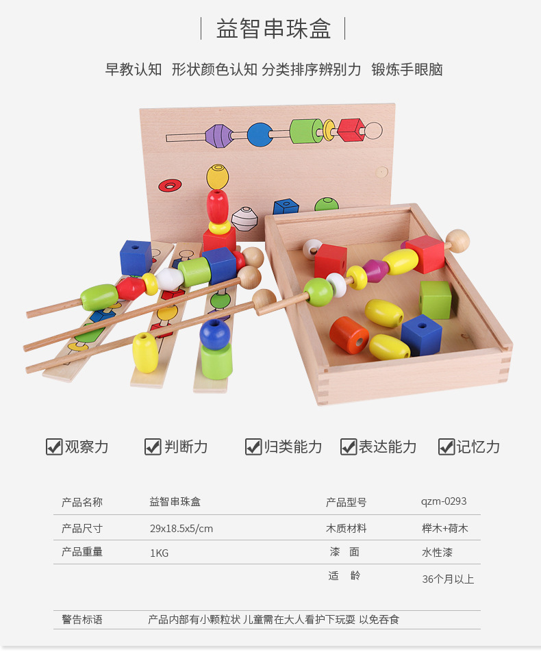 지능 개발 어린이 교육 장난감 조기 교육 계몽 교육 보조 감각 오류 제어 나무 상자 나무 스틱 지능 구슬