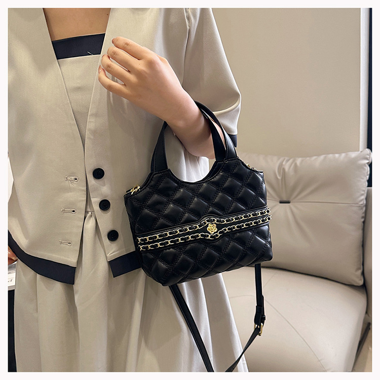 크로스 보더 백 여성 가방 2023 새로운 스타일 심플 패션 대용량 마름모꼴 샤넬 스타일 휴대용 숄더 크로스 바디 버킷스토어 가기