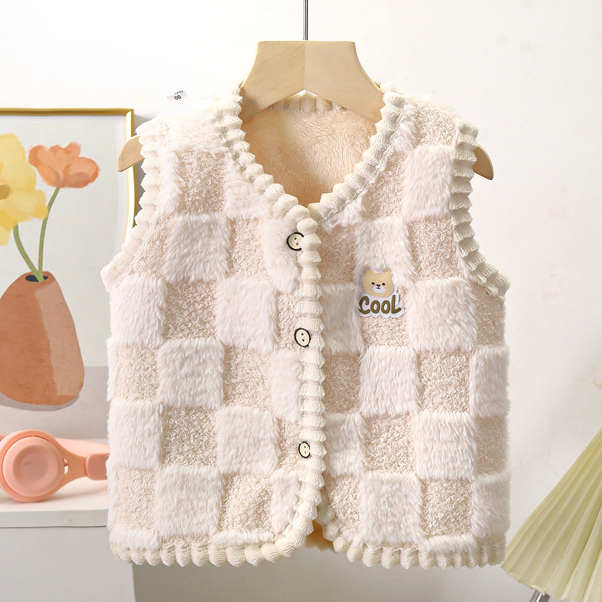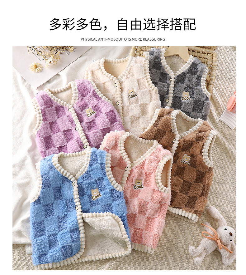 어린이 기모 조끼 남아 및 여아 양식 조끼 아기의 양면 벨벳 조끼 외부 착용 아기의 두꺼운 따뜻한 조끼