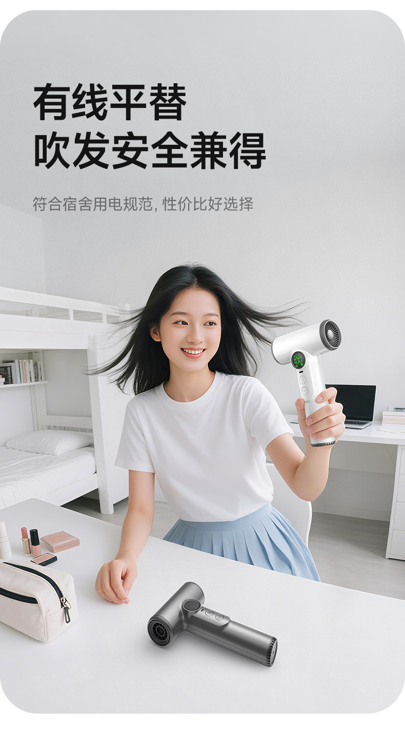 USB 충전식 무선 헤어 드라이어 학생 기숙사 헤어 블로잉 윈드 파워 헤어 드라이어 플러그인 없음스토어 가기