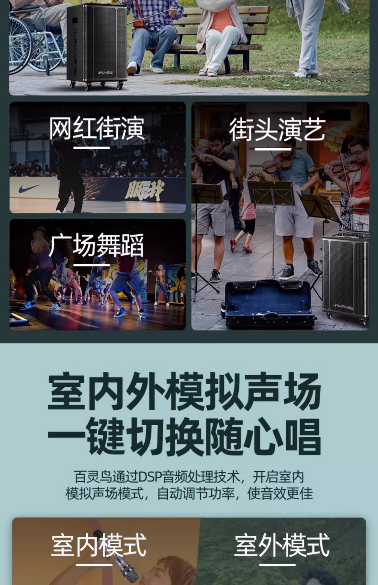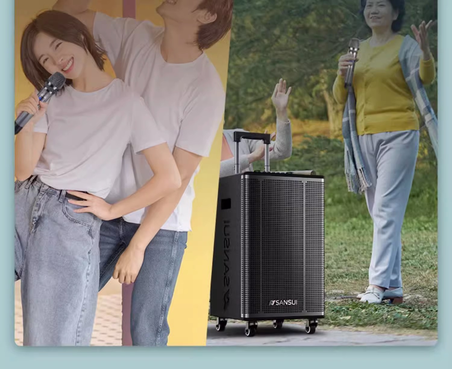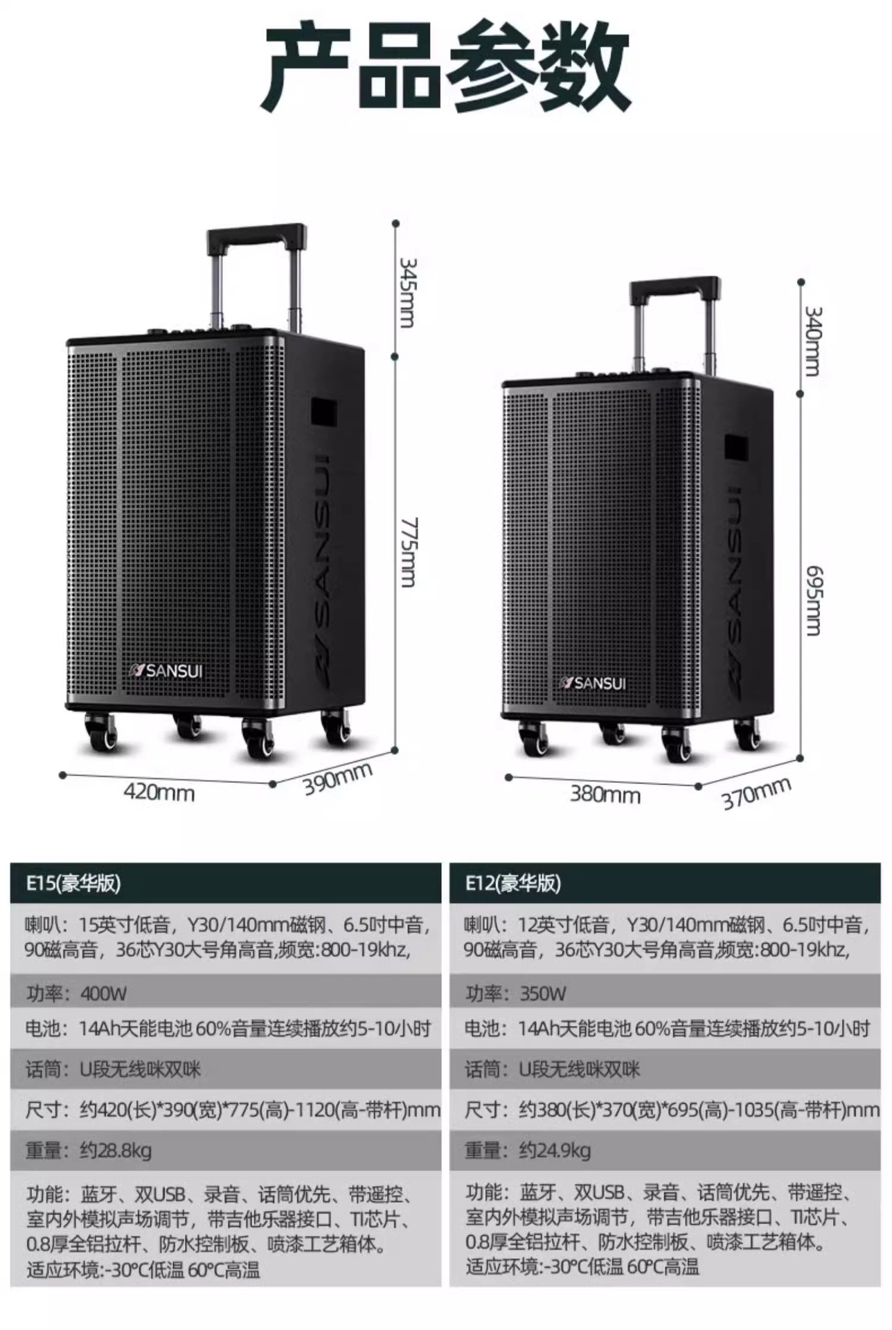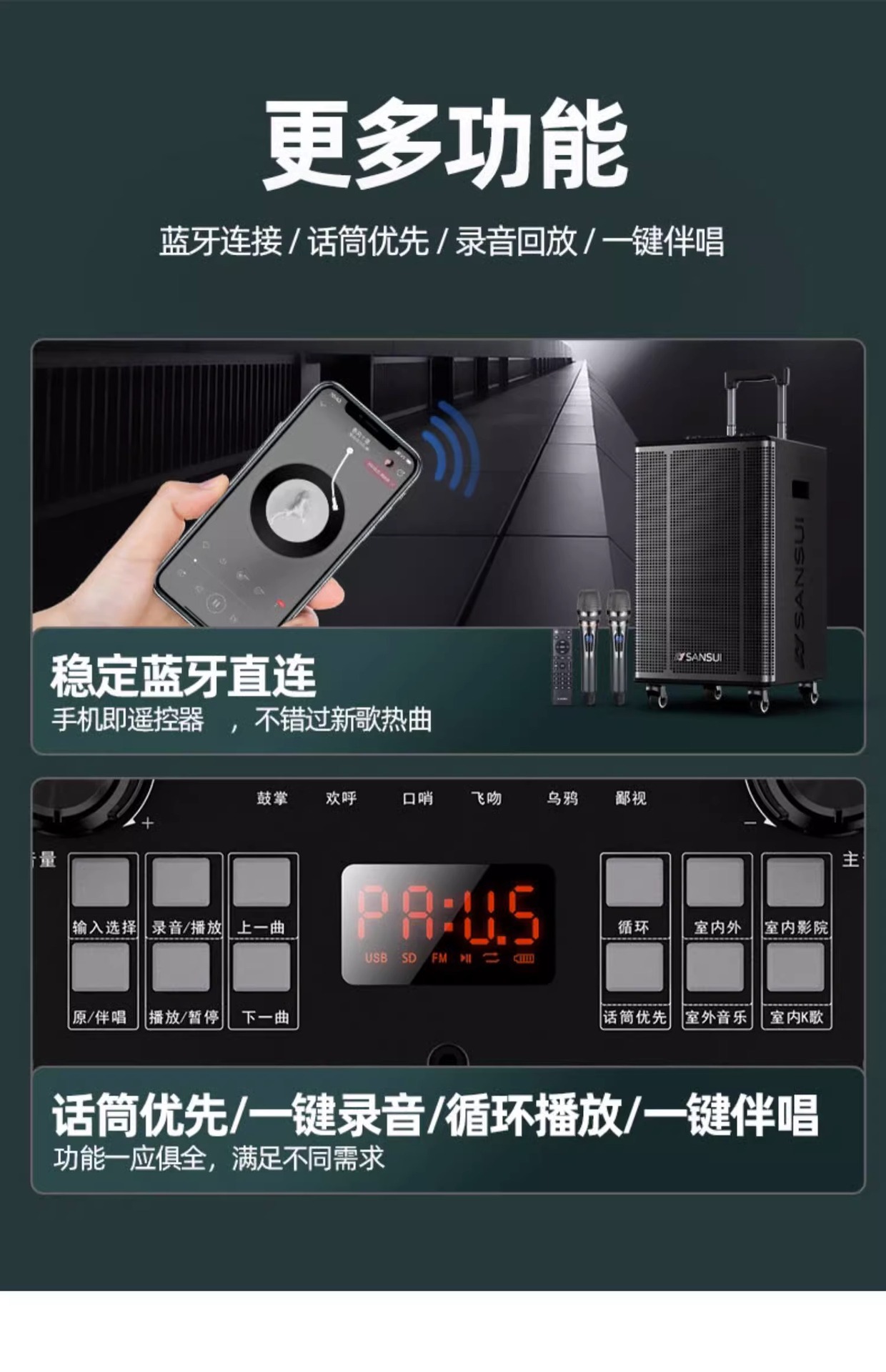 마이크 풀로드가있는 풍경 E 시리즈 스퀘어 댄스 오디오 야외 스피커 K 노래 모바일 프로 플레이어스토어 가기