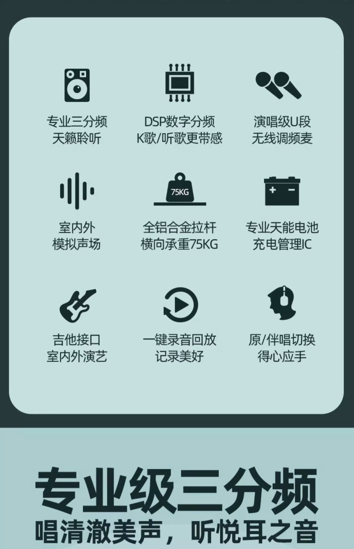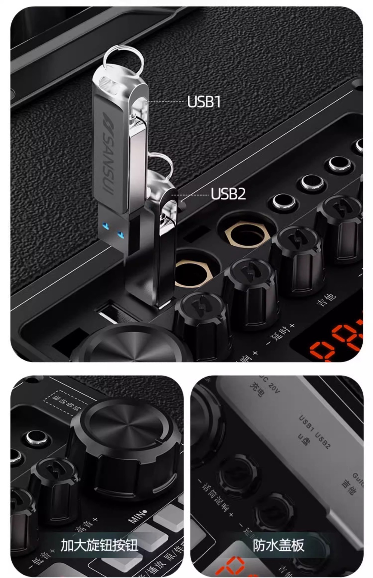마이크 풀로드가있는 풍경 E 시리즈 스퀘어 댄스 오디오 야외 스피커 K 노래 모바일 프로 플레이어