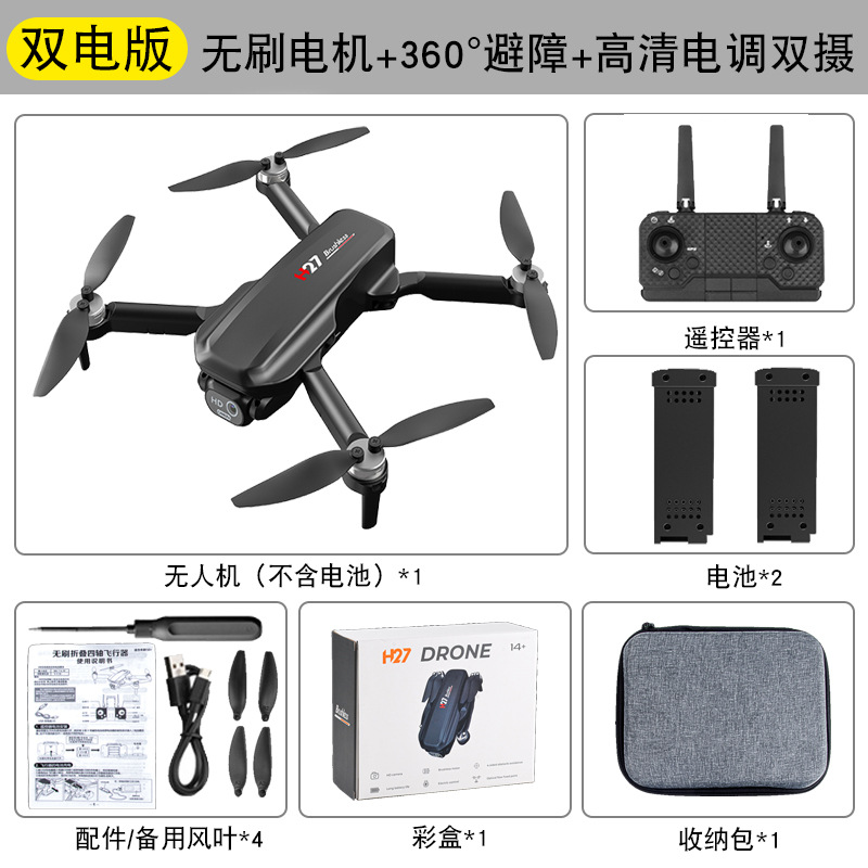 | Product Number: H27 Brushless Drone Function: Optical flow hovering, brushless motor, 90 ° electric adjustable lens, obstacle avoidance on all sides, 360 ° roll, dual camera switching, fixed height function, three speed switching, foldable aircraft, six axis gyroscope; One click takeoff, one click landing, ascent descent, forward and backward, left and right side flight, steering, (with camera added functions: gesture photography, video recording, headless mode, emergency stop, trajectory flight, gravity sensing, automatic photography) The entire set includes: drone * 1 remote control transmitter * 1 USB charging cable * 1 battery * 1 fan blade * 4 screwdriver * 1 APP manual * 1 Operation manual * 1 Product size: 26 * 24 * 5.5cm (unfolded size), 14.5 * 9 * 5.5cm (folded size) Motor model: 1503 brushless motor Body battery: 3.7V 1800mah lithium battery Lens angle: remote electric adjustment 90 ° Storage bag size: 21 * 17 * 7cm Color box size: 22 * 17 * 7cm Packing specification: 36 pieces, size: 66 * 27 * 50cm, weight: 14/13KG |