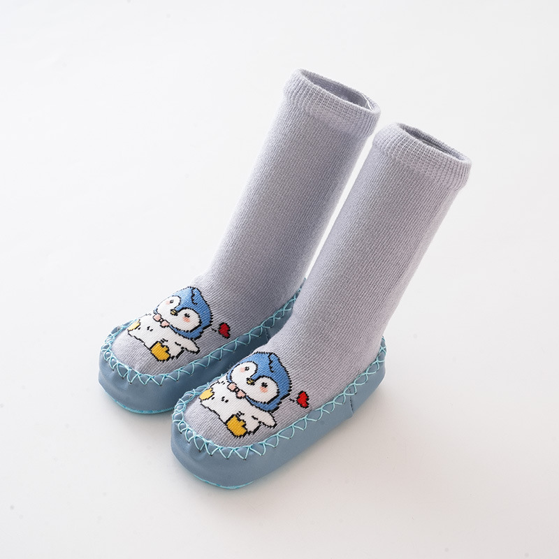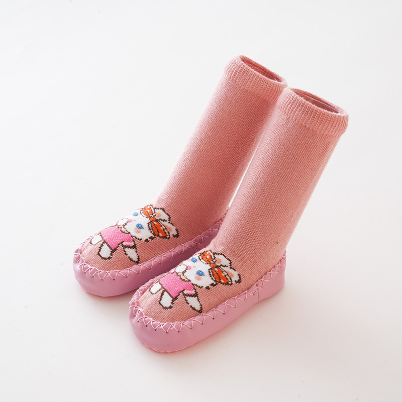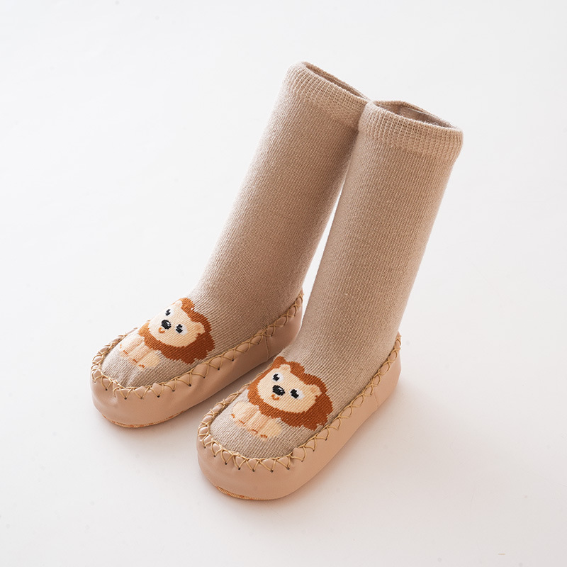 가을과 겨울 아기 신발과 양말 아기 바닥 양말 미끄럼 방지 가죽 밑창 유아 양말 귀여운 만화 양말 신발 실내 연습 신발