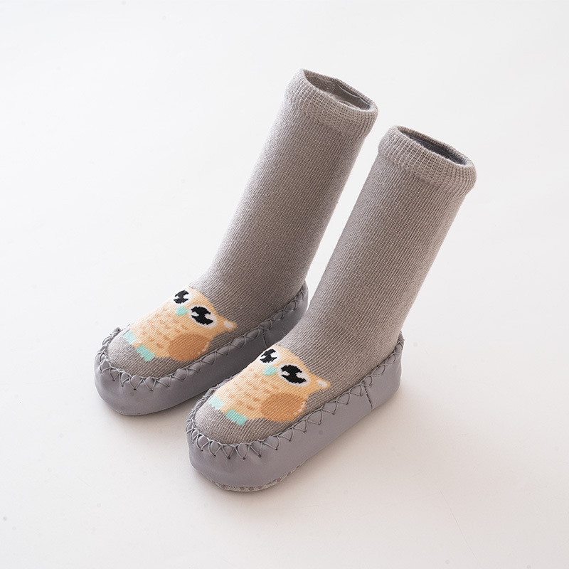 가을과 겨울 아기 신발과 양말 아기 바닥 양말 미끄럼 방지 가죽 밑창 유아 양말 귀여운 만화 양말 신발 실내 연습 신발스토어 가기
