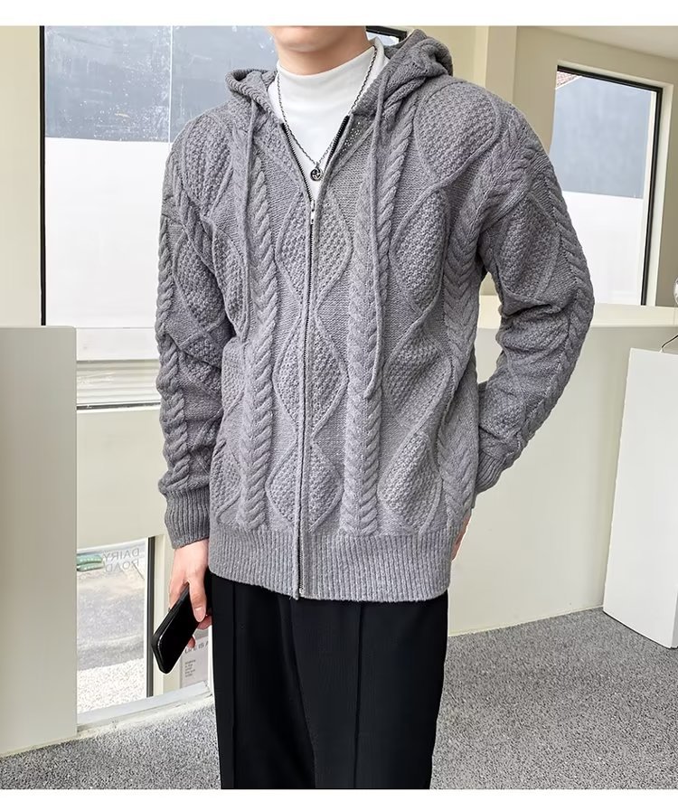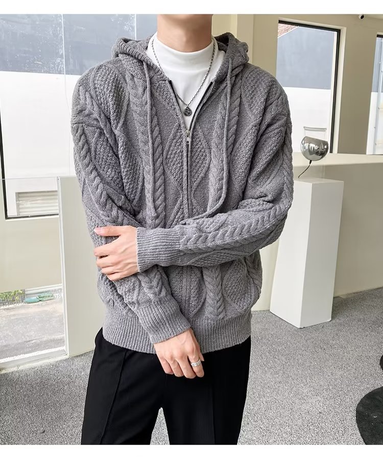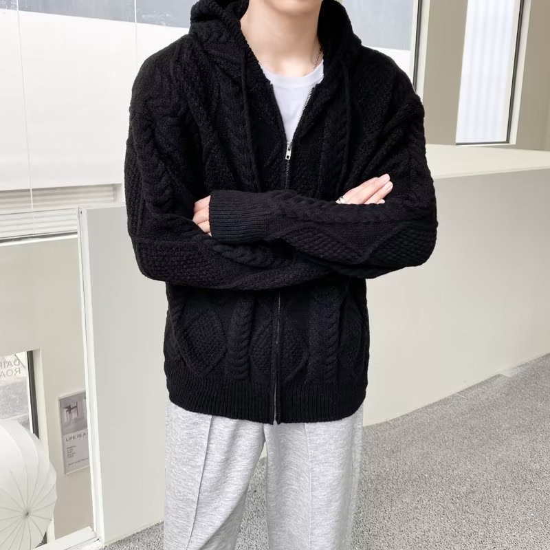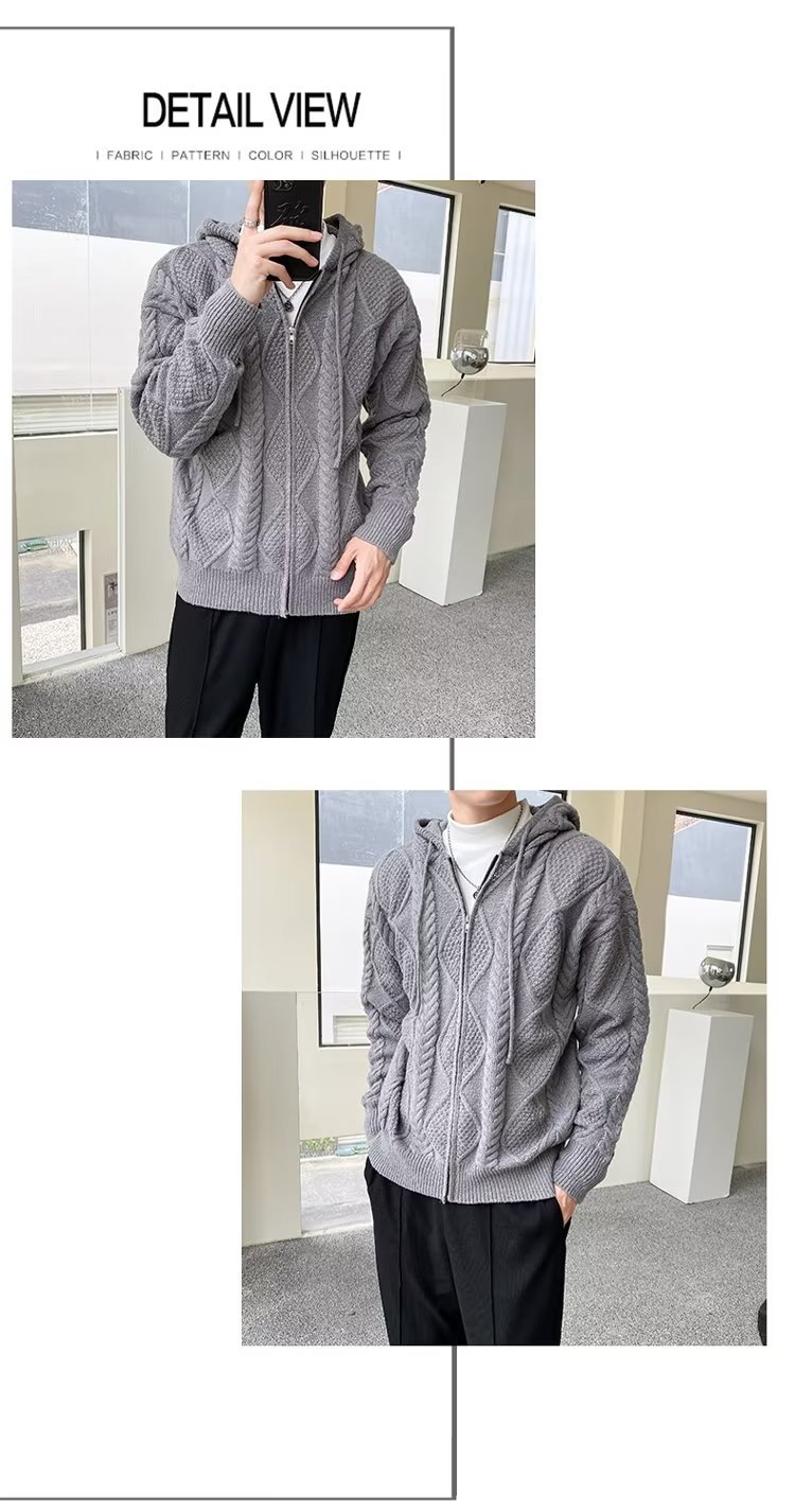 가벼운 성숙한 스타일 니트 카디건 야구 세트 남자의 커플의 봄과 가을 두꺼운 유행 브랜드 후드 스웨터 지퍼 재킷스토어 가기