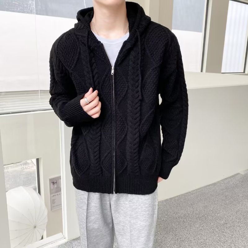 가벼운 성숙한 스타일 니트 카디건 야구 세트 남자의 커플의 봄과 가을 두꺼운 유행 브랜드 후드 스웨터 지퍼 재킷