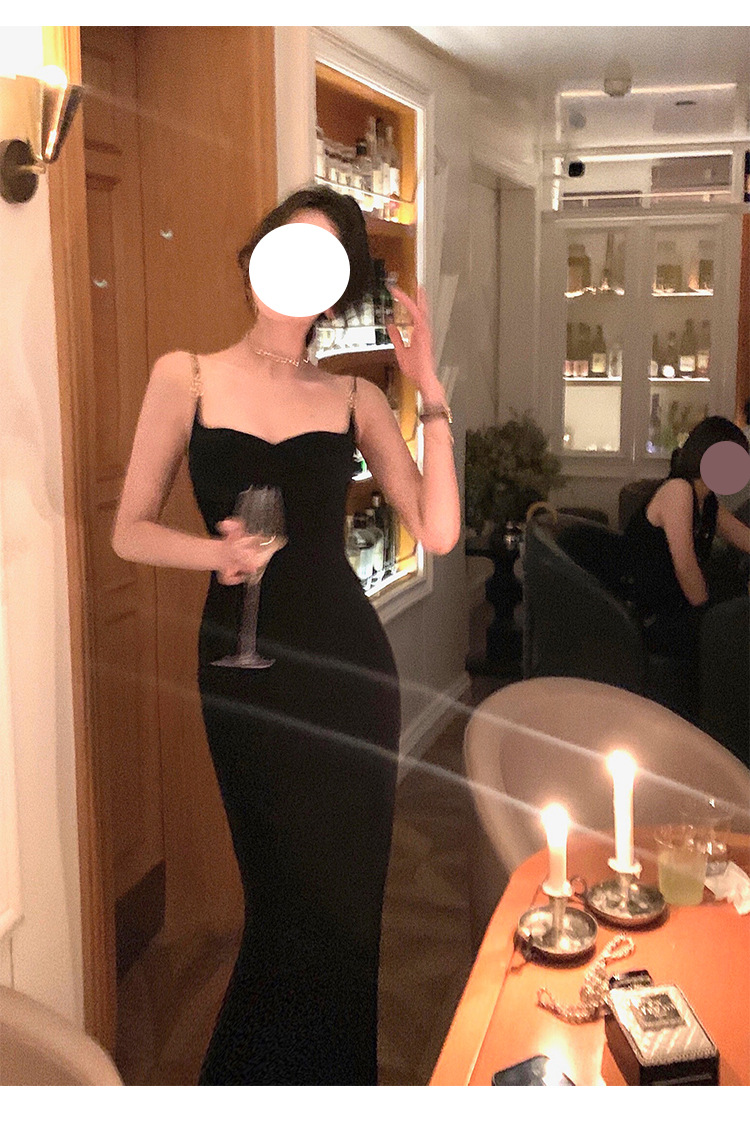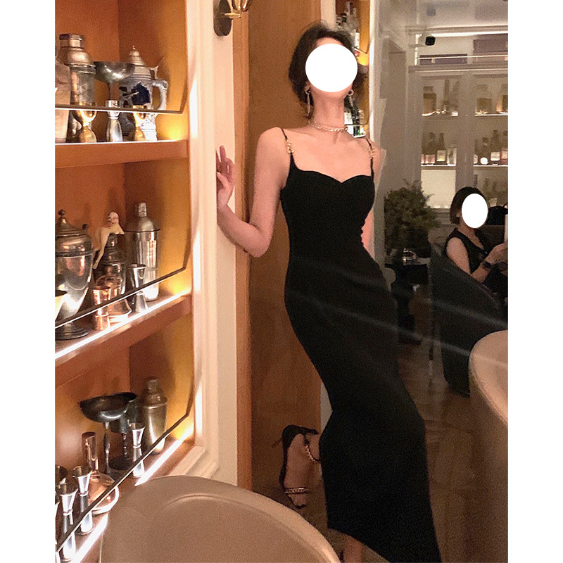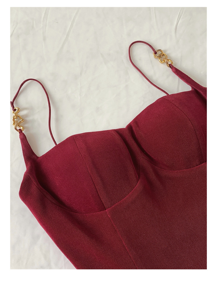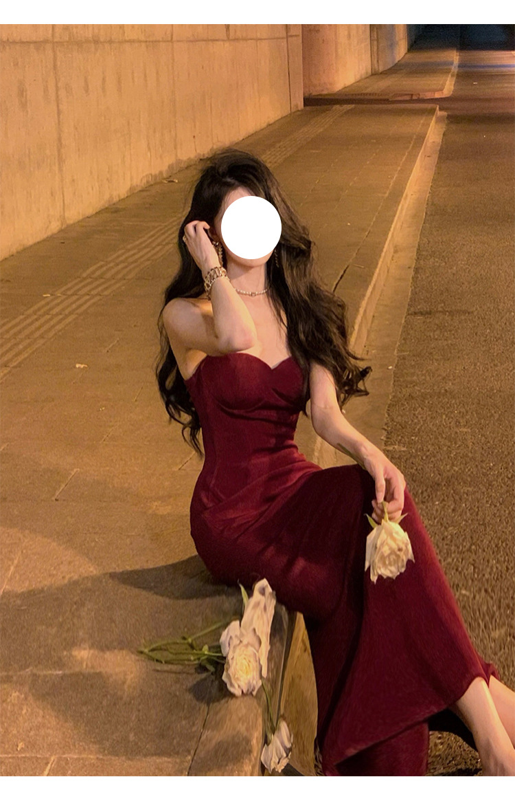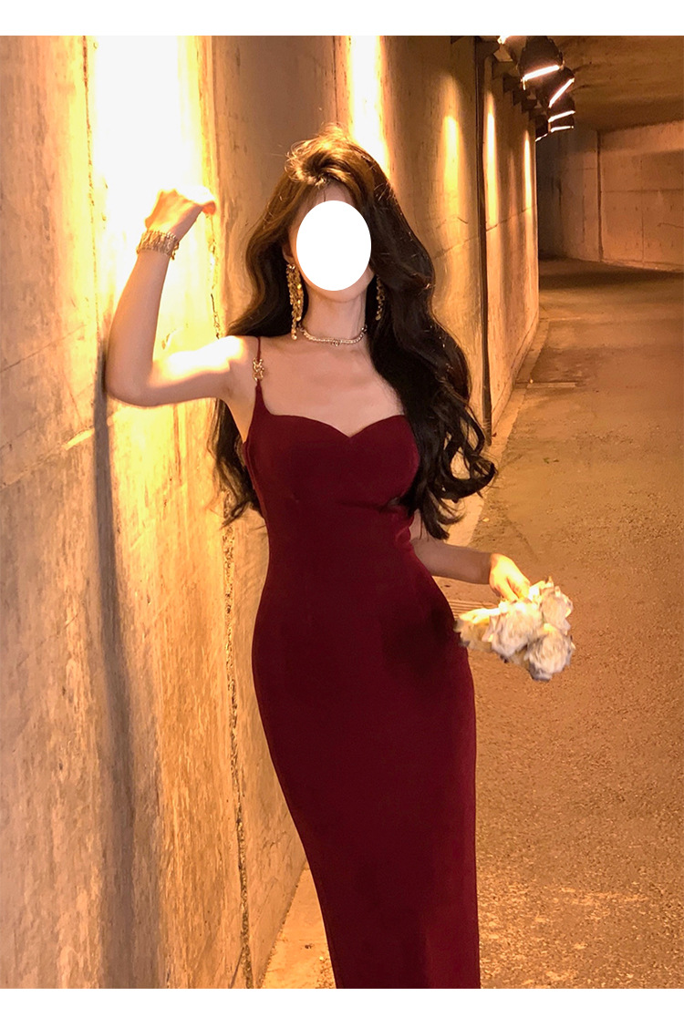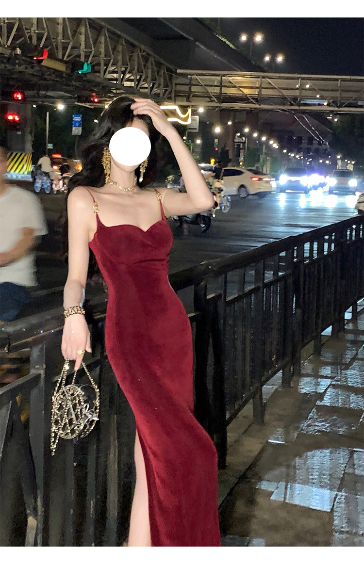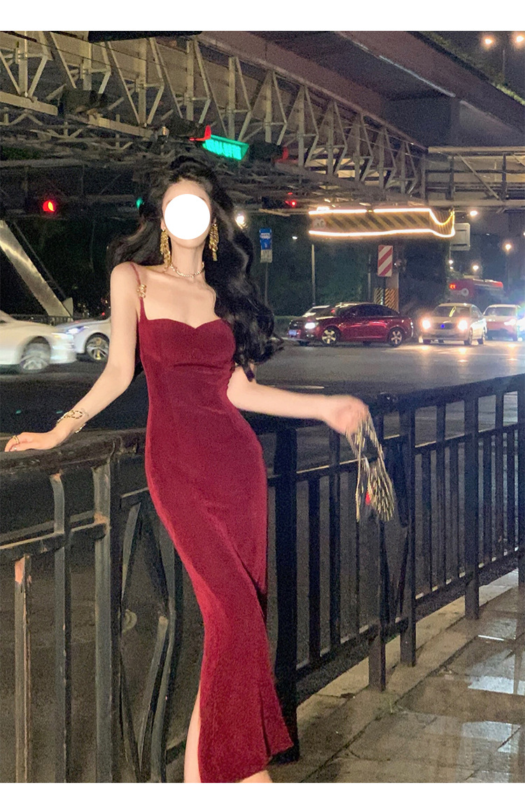 우아한 여성 연회용 이브닝 드레스 레드 슬립 아세테이트 니트 드레스 여성용 프렌치 스타일 슬릿 롱 드레스스토어 가기