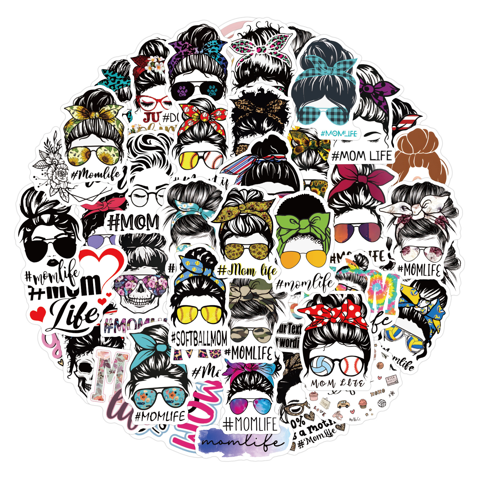 60 새로운 크로스 보더 MOM LIFE 낙서 스티커 기타 휴대 전화 컴퓨터 장식 스티커 방수 스티커 도매
