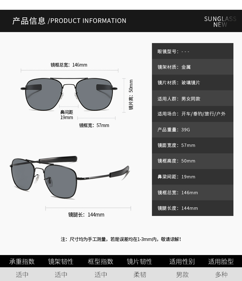 수출 유럽 및 미국 파일럿 유리 프레임 남성용 Sun 선글라스 A0 with 8054스토어 가기