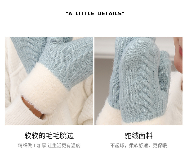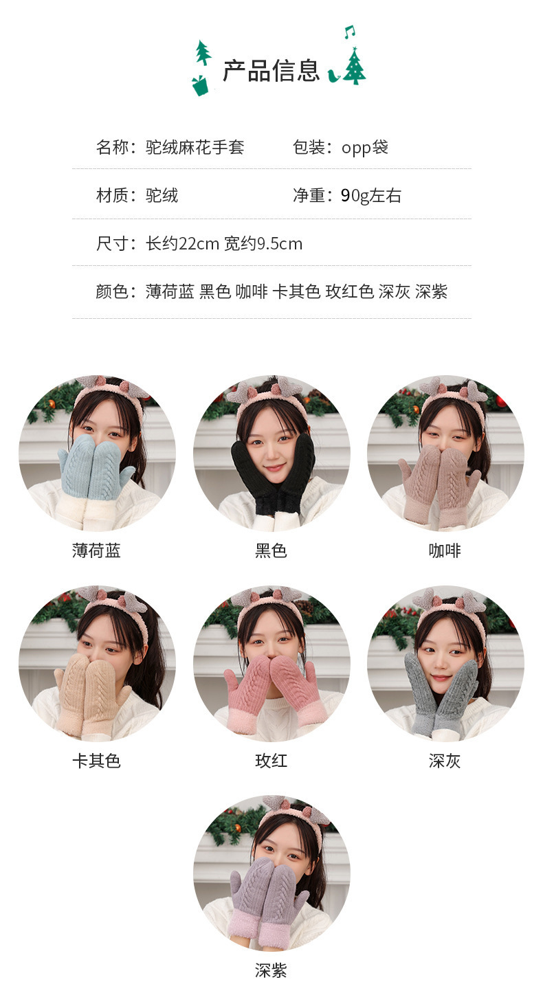 두꺼운 더블 레이어 카멜 머리 따뜻한 장갑 겨울 여자의 한국 스타일 가방 포인터 직조 장갑 방한 피부 친화적 인 벨벳 장갑스토어 가기