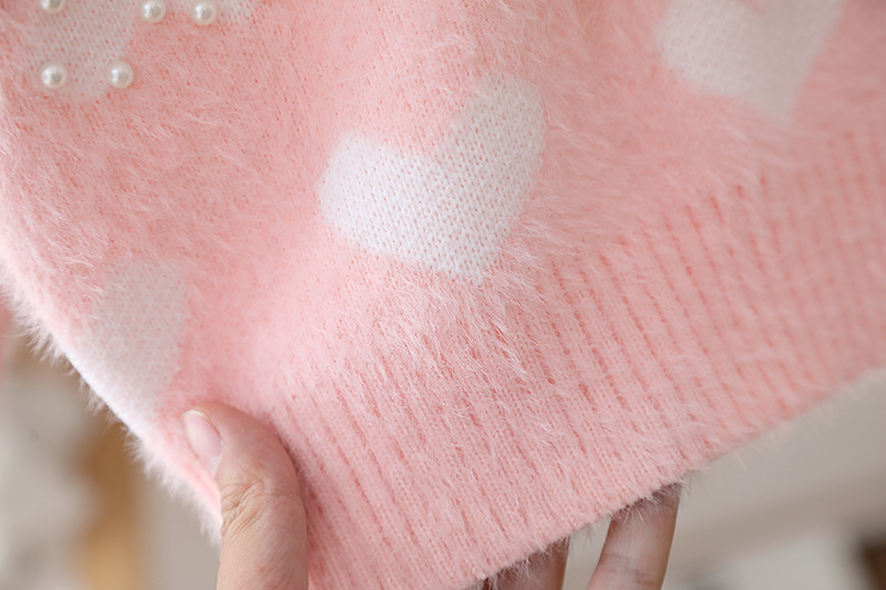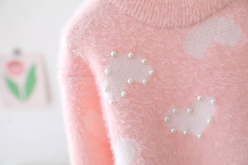 儿童爱心提花珍珠毛衣