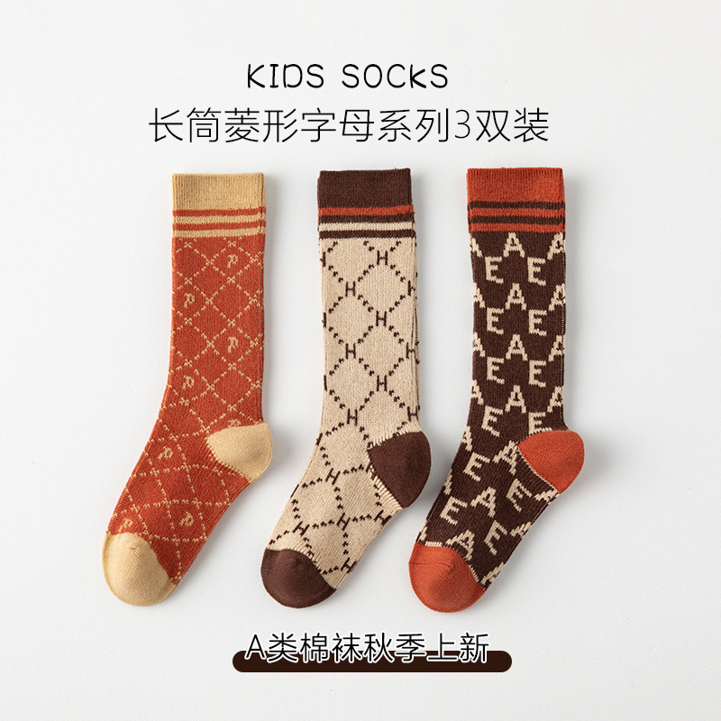 A급 가을 겨울 일본식 무봉제 아동 양말 남아 여아용 이중 바늘 이중 라인 체크무늬 알파벳 패션 롱 양말 중대형 아동용스토어 가기