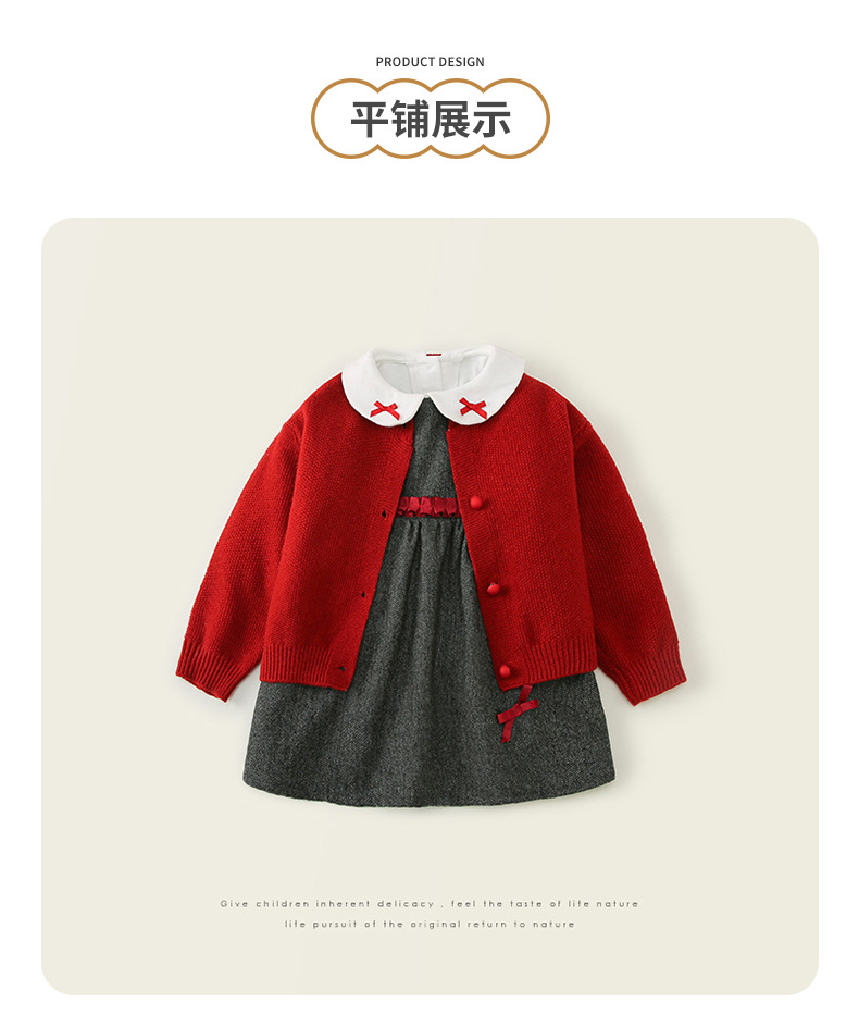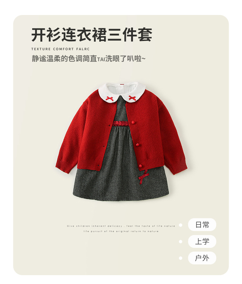 시위 어린이복 2025 여아 봄옷 3종 세트 아동용 가디건 니트 재킷 긴팔 셔츠 조끼 원피스 세트