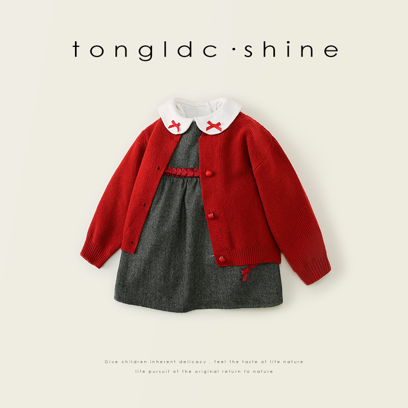 시위 어린이복 2025 여아 봄옷 3종 세트 아동용 가디건 니트 재킷 긴팔 셔츠 조끼 원피스 세트스토어 가기