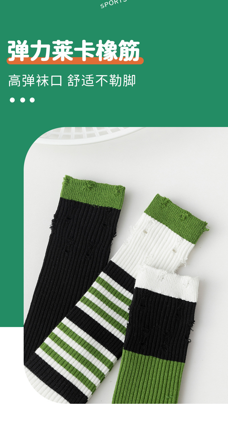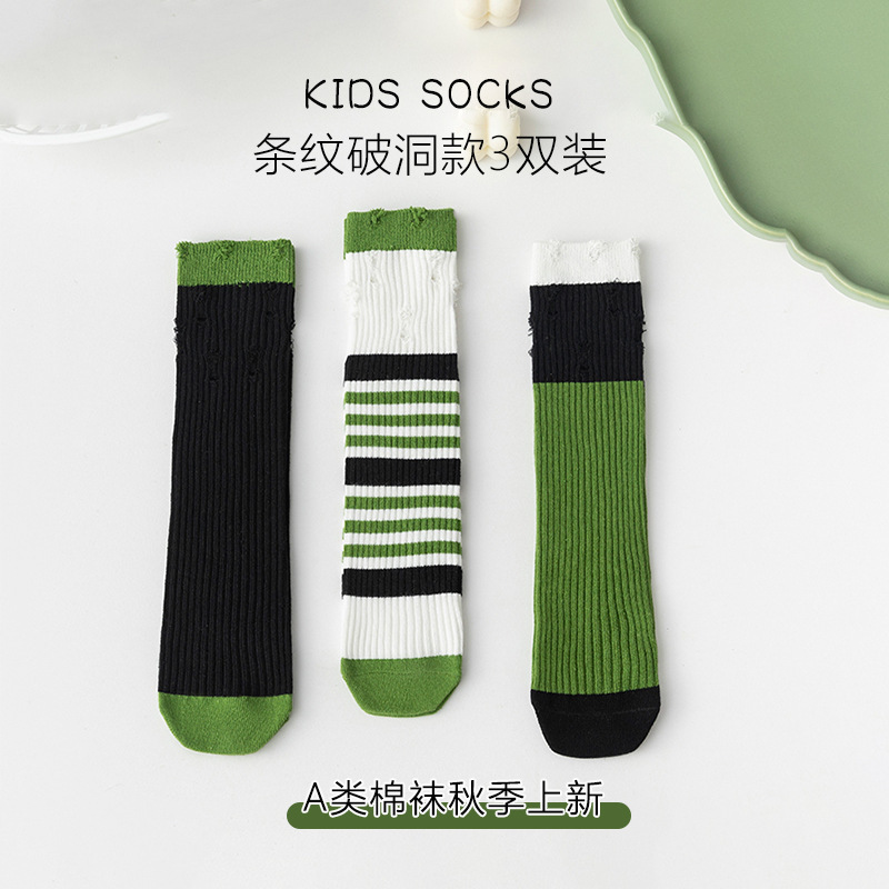 가을과 겨울 어린이 홀인더홀 트렌디 스타킹 남성용 보물 여성용 보물 더블 니들 컬러 매칭 스트라이프 올매치 그린 스타킹
