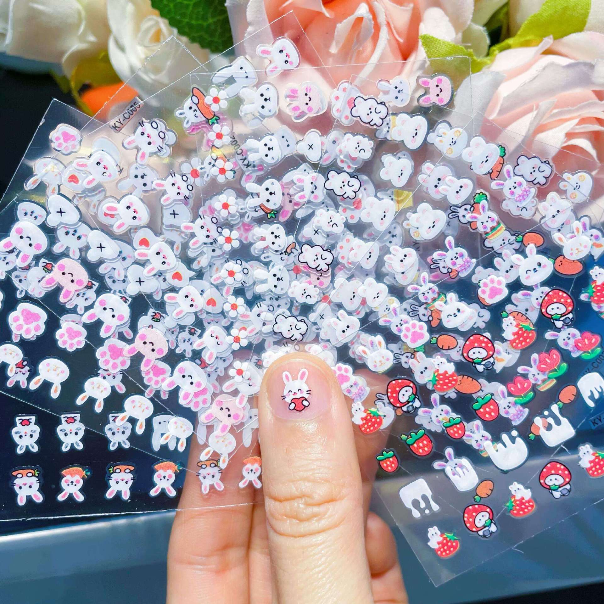 타오바오 뜨거운 판매 귀여운 만화 토끼 네일 장식 스티커 반짝이 토끼 유치원 어린이 보상 네일 아트 스티커