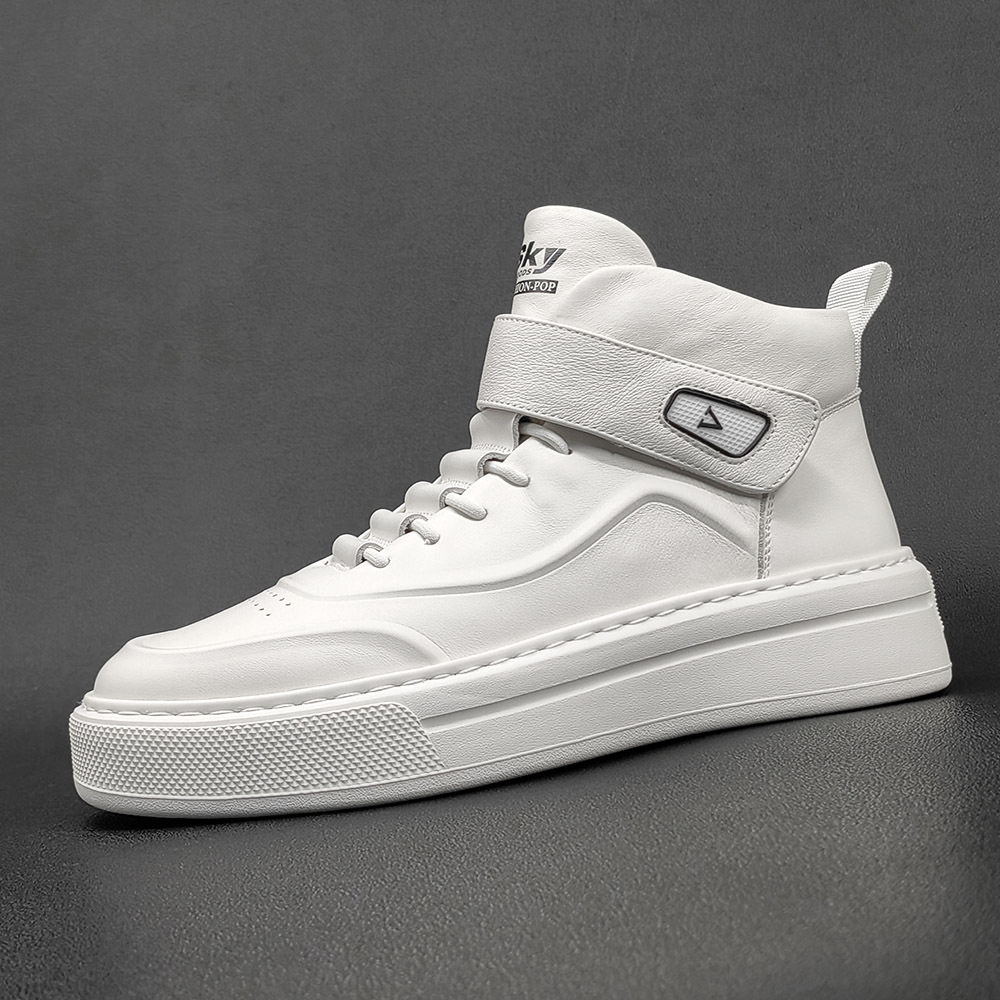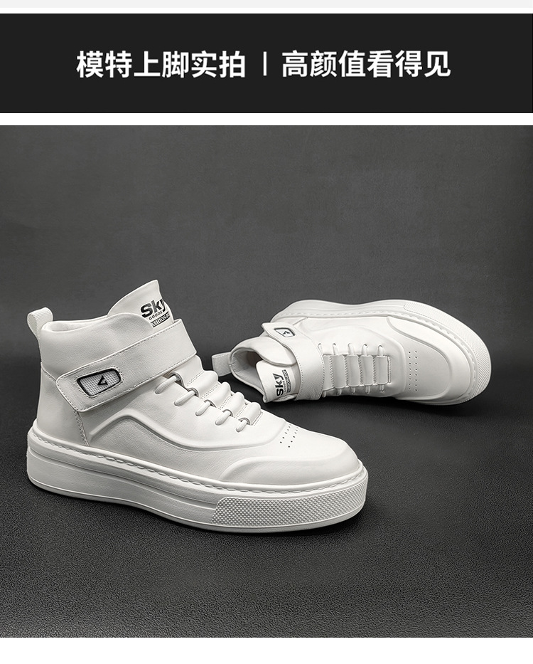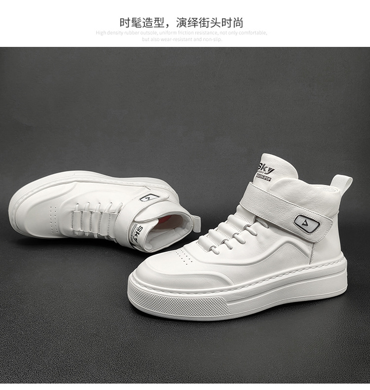 남성용 흰색 하이탑 보드 신발 남성용 트렌디 한 신발 소년 모든 경기 흰색 신발 가죽 하이탑 신발 플랫폼 캐주얼 신발 남성용