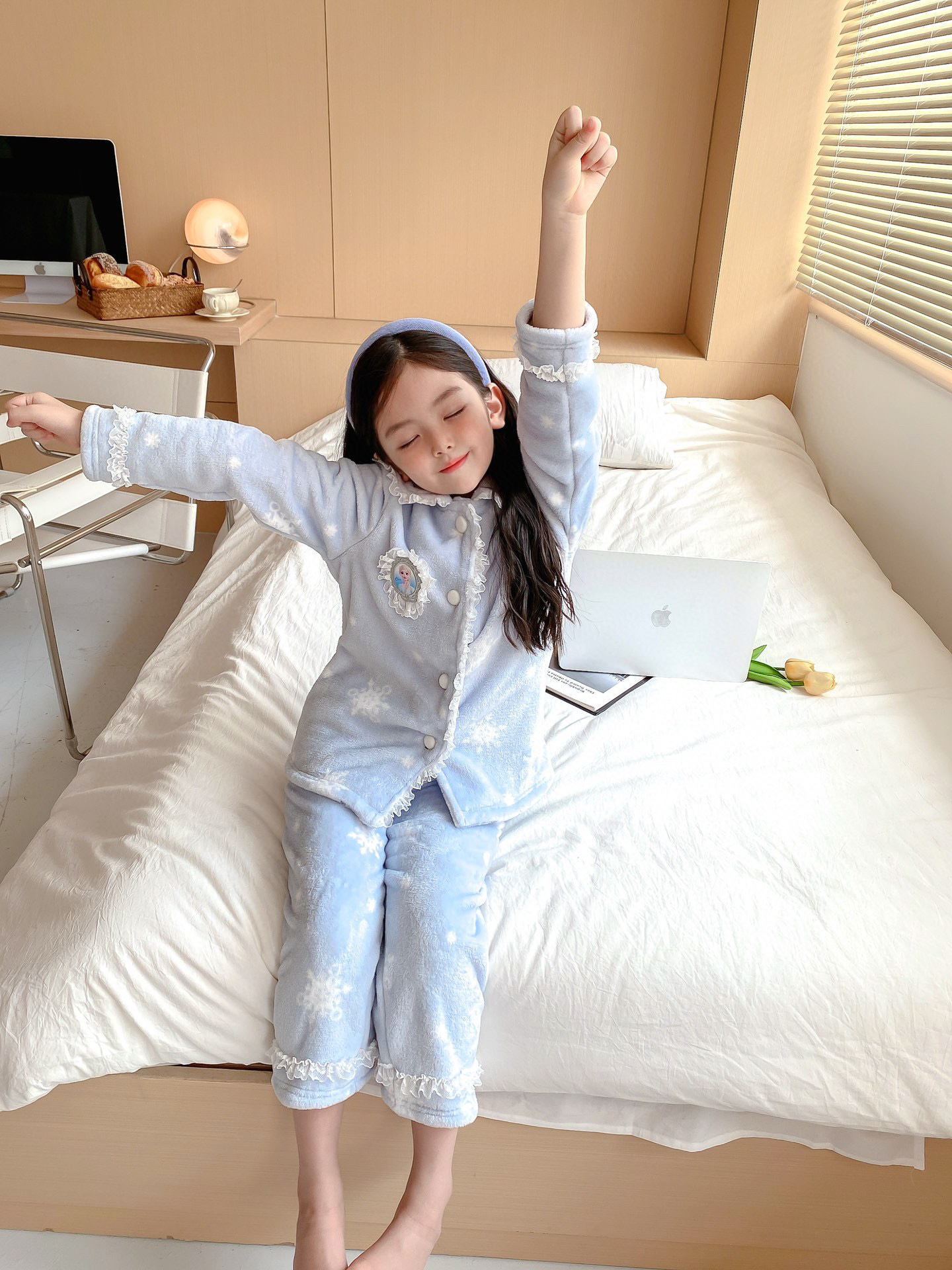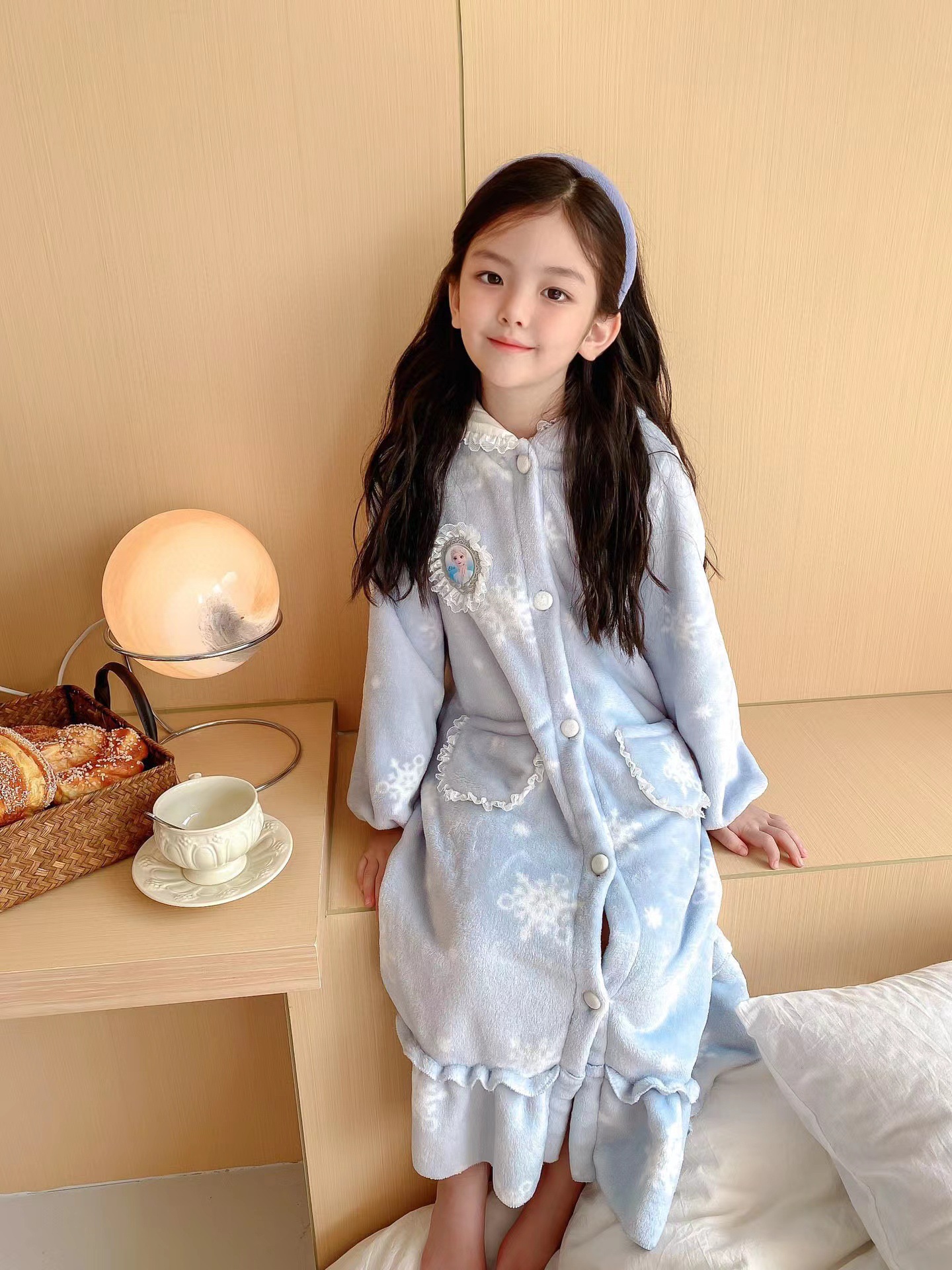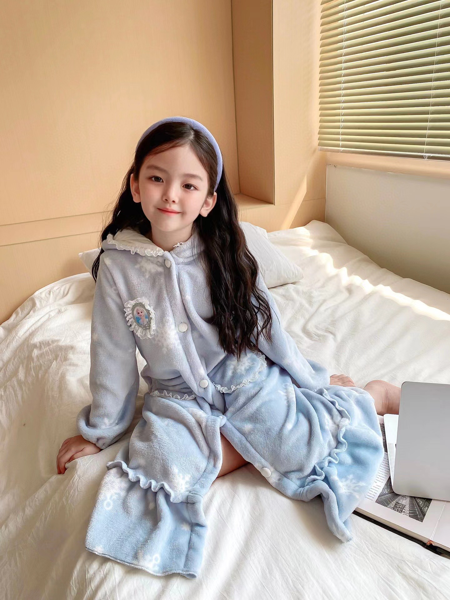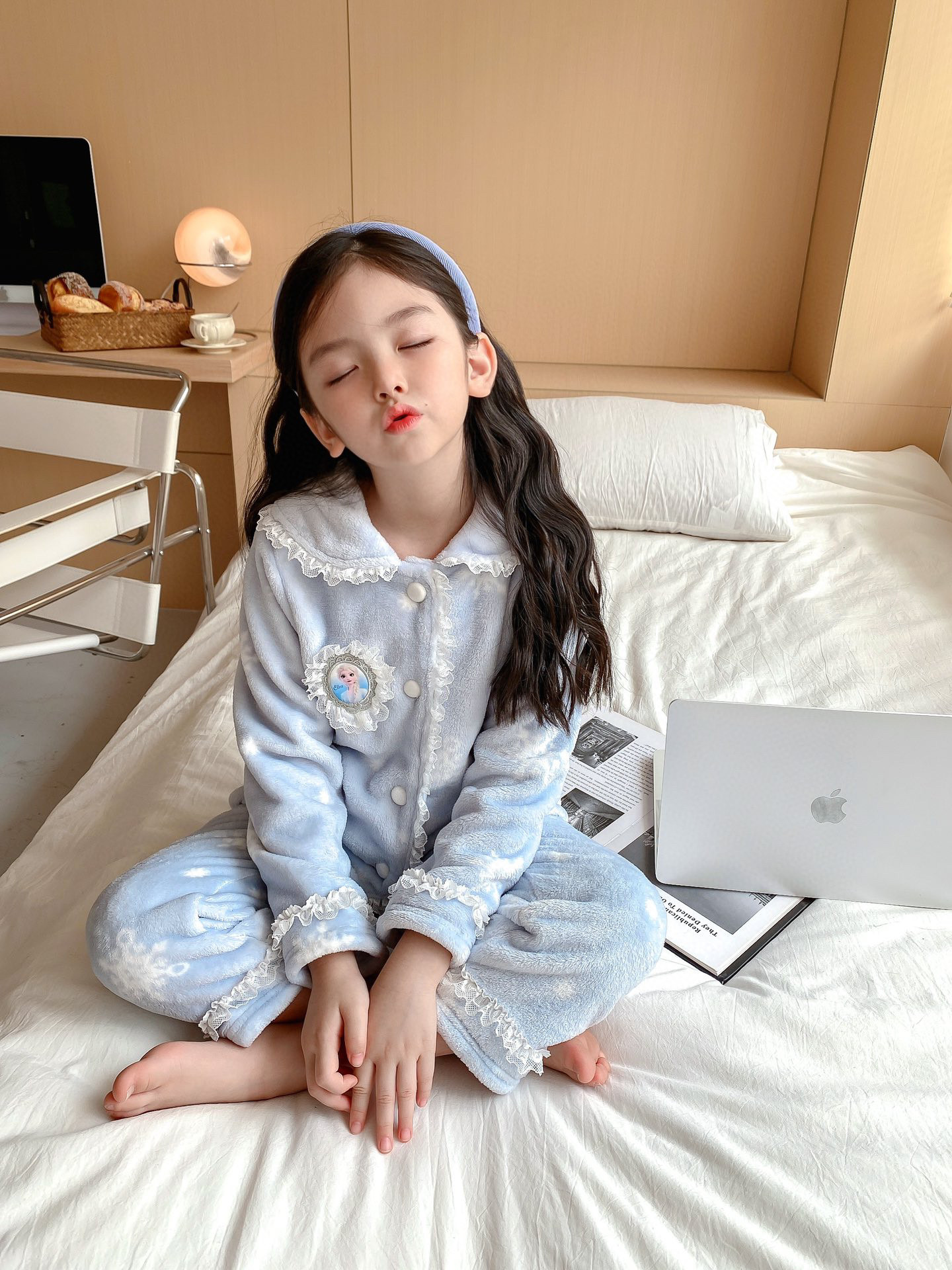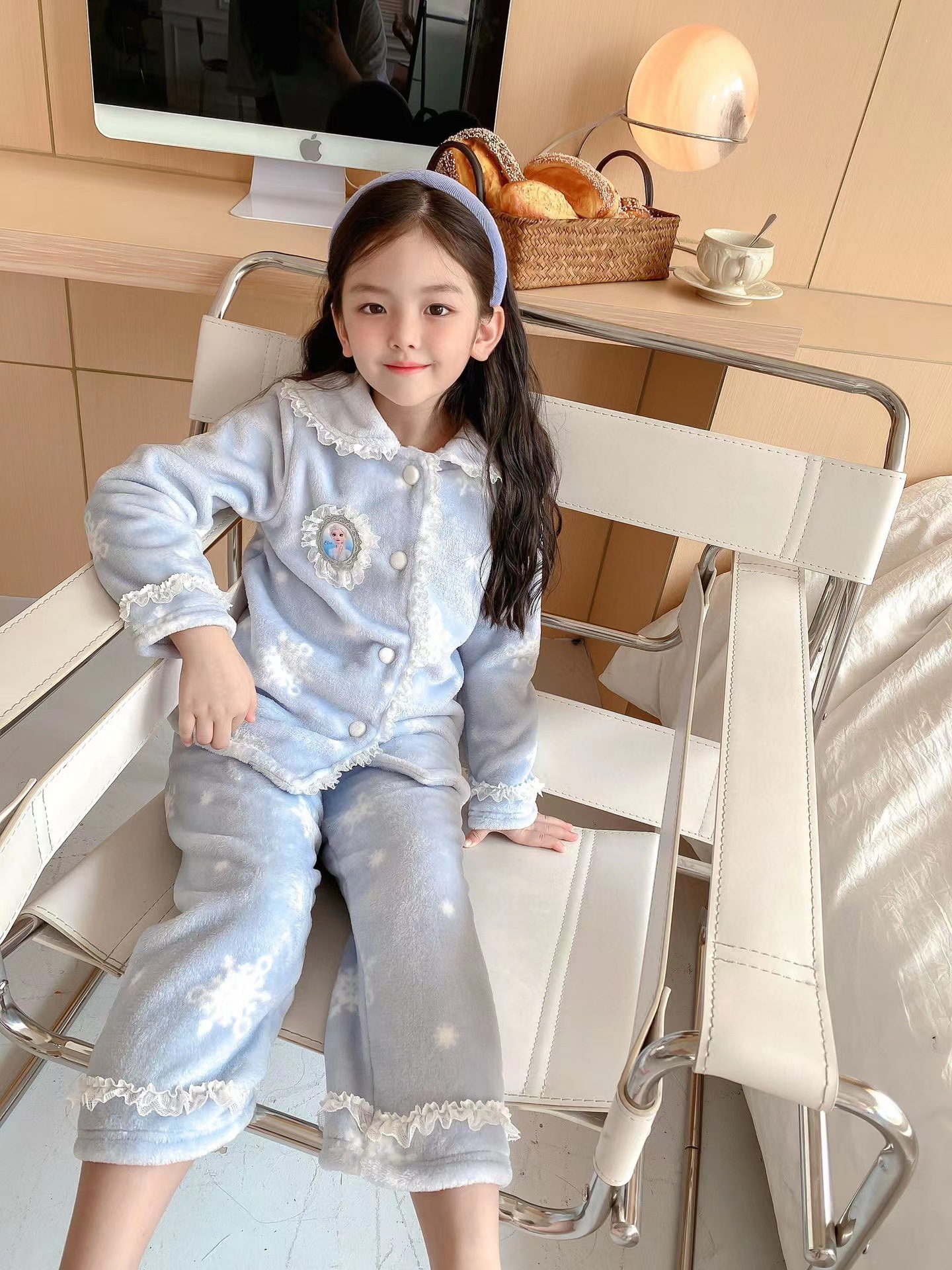 가을과 겨울 2023 새로운 소녀 공주 엘사 플란넬 잠옷 가디건 세트 산호 양털 잠옷 얼음과 눈 가정 옷스토어 가기