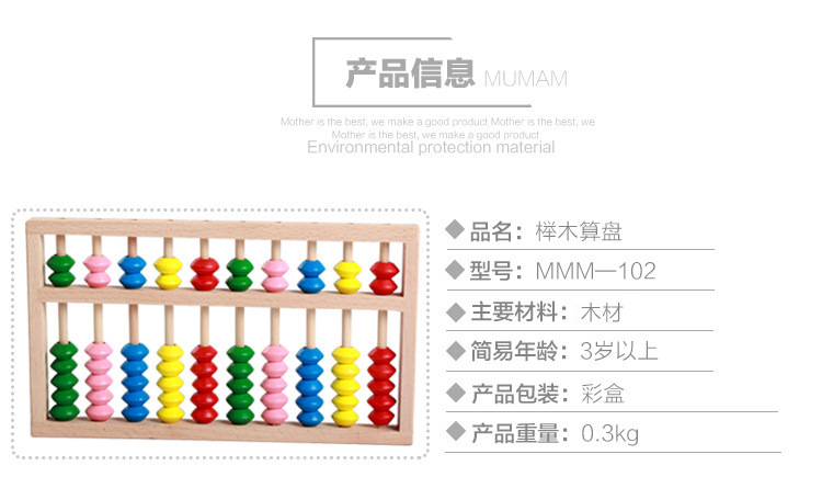 Yizhi 초등학교 어린이 나무 색 주판 단단한 나무 구식 너도밤 나무 주판 학습 수학 교재