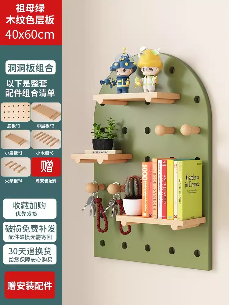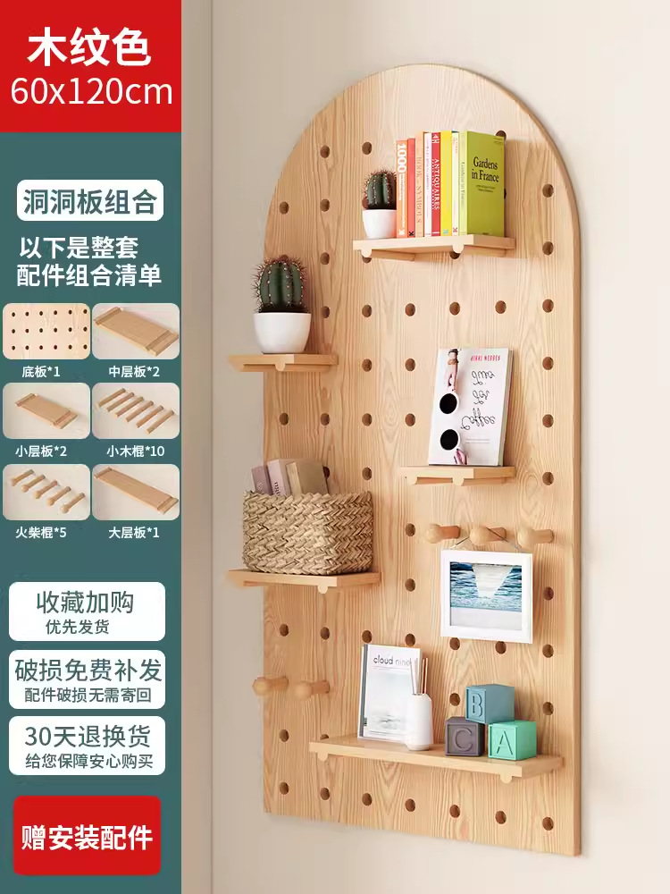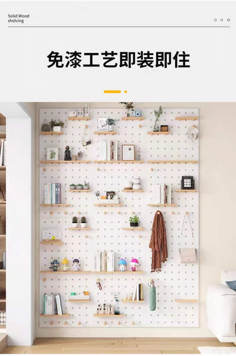 단단한 나무 구멍 보드 벽 스토리지 랙 교수형 보드 장식 파티션 랙 스토리지 랙 벽 나무 책장스토어 가기