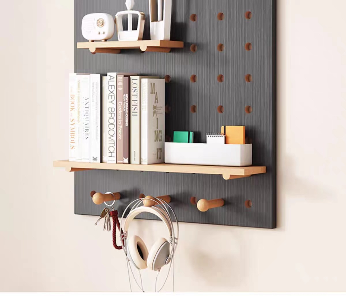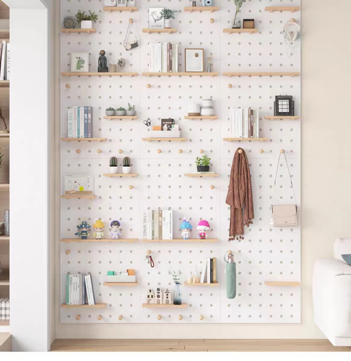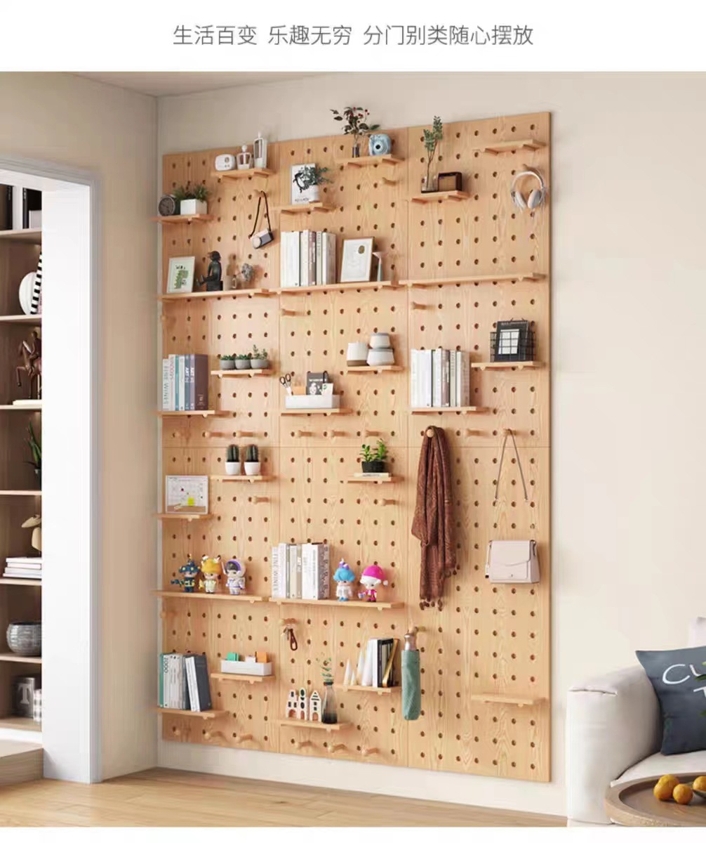 단단한 나무 구멍 보드 벽 스토리지 랙 교수형 보드 장식 파티션 랙 스토리지 랙 벽 나무 책장